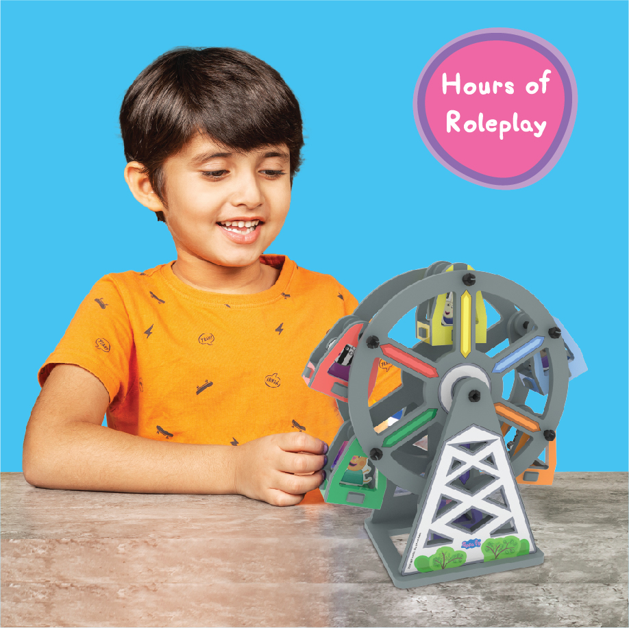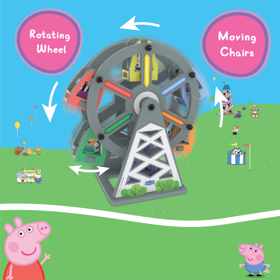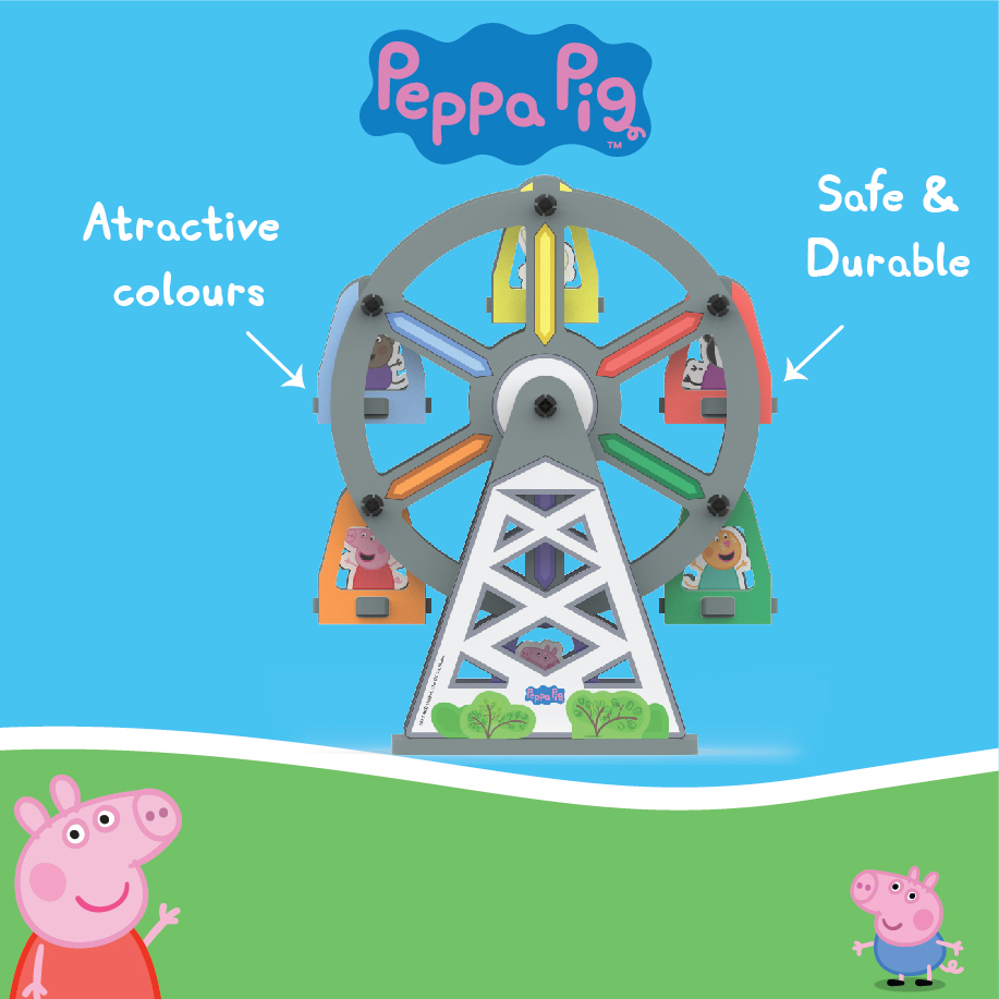 Interactive Fun: The Peppa Pig Ferris Wheel comes complete with moving chairs and a rotating wheel, allowing kids to recreate the excitement of a real Ferris wheel ride. Watch as their imaginations take flight! This aids in the development of cognitive and motor skills. |