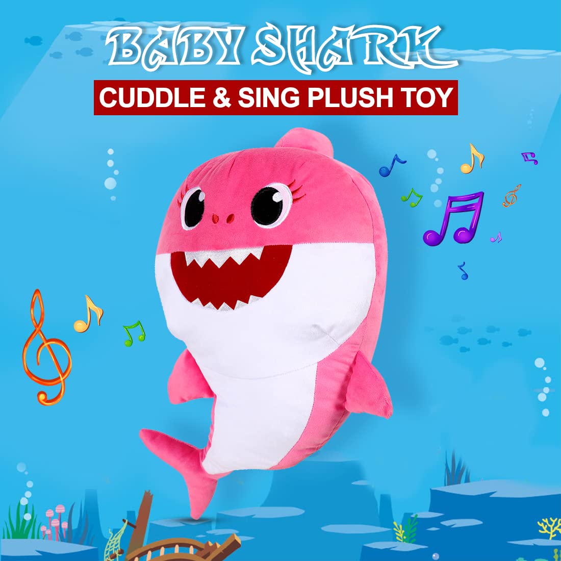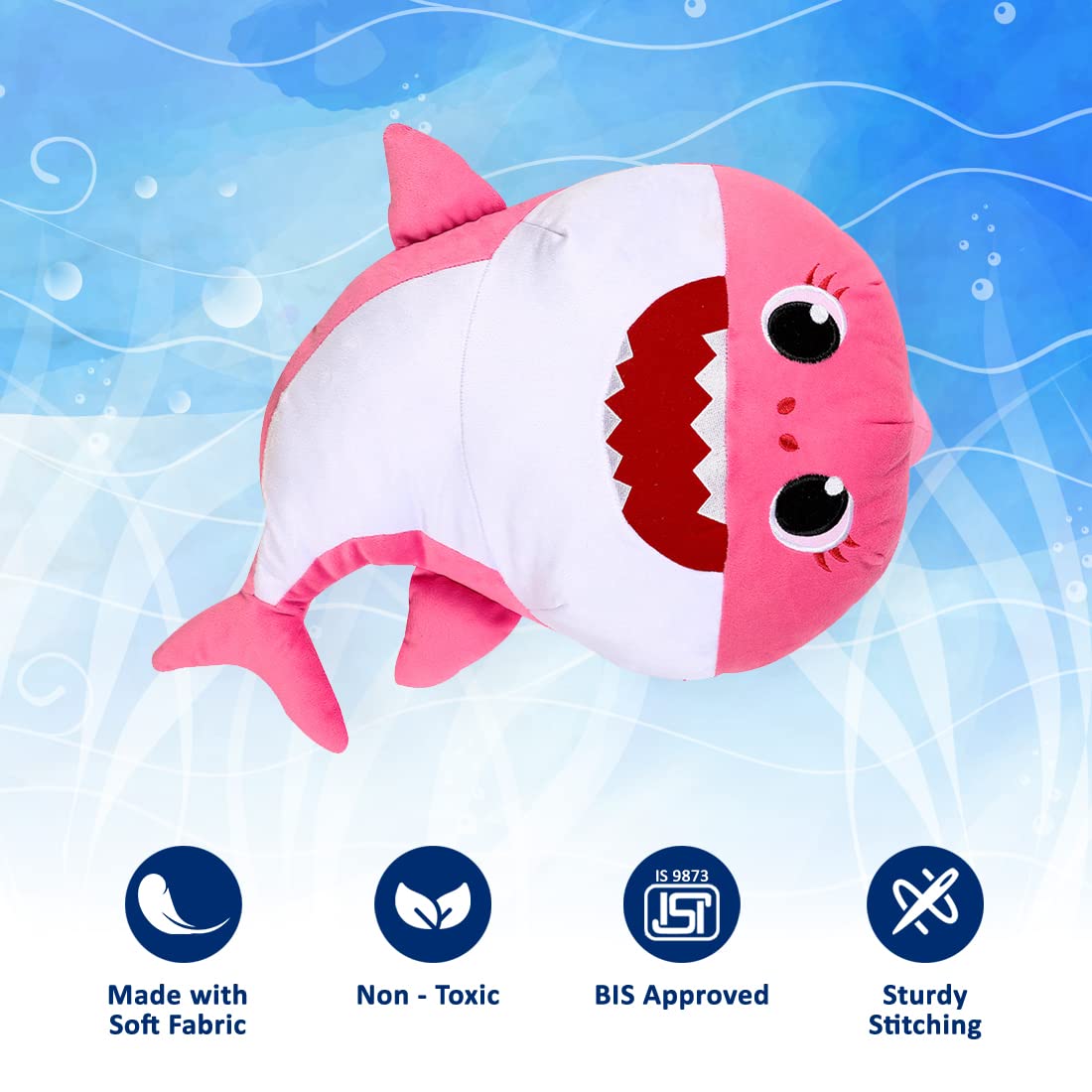 Super Soft plush to cuddle and sing along : When you squeeze the Shark's Tail, you will hear the Mommy Shark singing songs. These plush toys are made with a special fabric that allows you to cuddle and sing them. They love to snuggle in your arms or on your bed. |