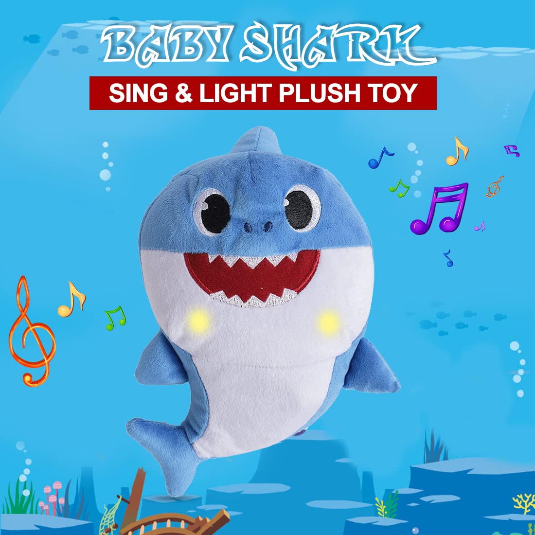 Super Soft plush to cuddle and sing along : When you squeeze the shark’s tail, you will probably hear the Daddy shark singing songs. At the same time, the Daddy shark will shine when it sings, as it having LED light inside which make Daddy Shark more beautiful in dark nights. These plush toys are made with a special fabric that allows you to cuddle and sing them. They love to snuggle in your arms or on your bed. |