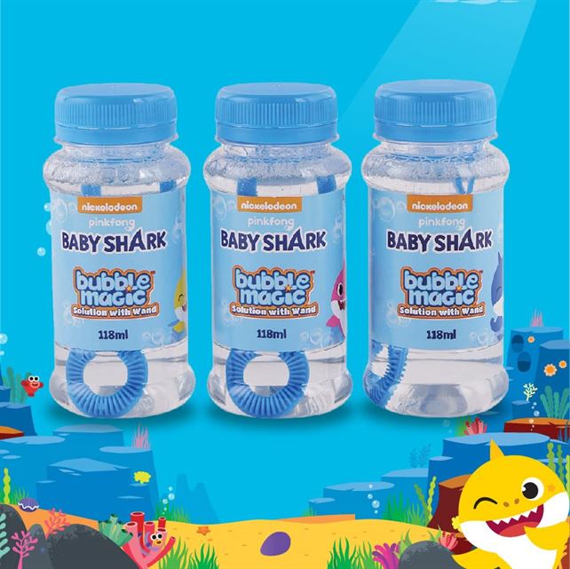 Unique & First of Its Kind. A bubble solution kit unlike one ever seen before! Packed with 3 bottles each containing 4 fl oz (118 ml) Bubble Solution and a Wand, Designed in Baby Shark graphics this cute and compact kit ensures you can blow bubbles anytime, anywhere with your favourite characters. |