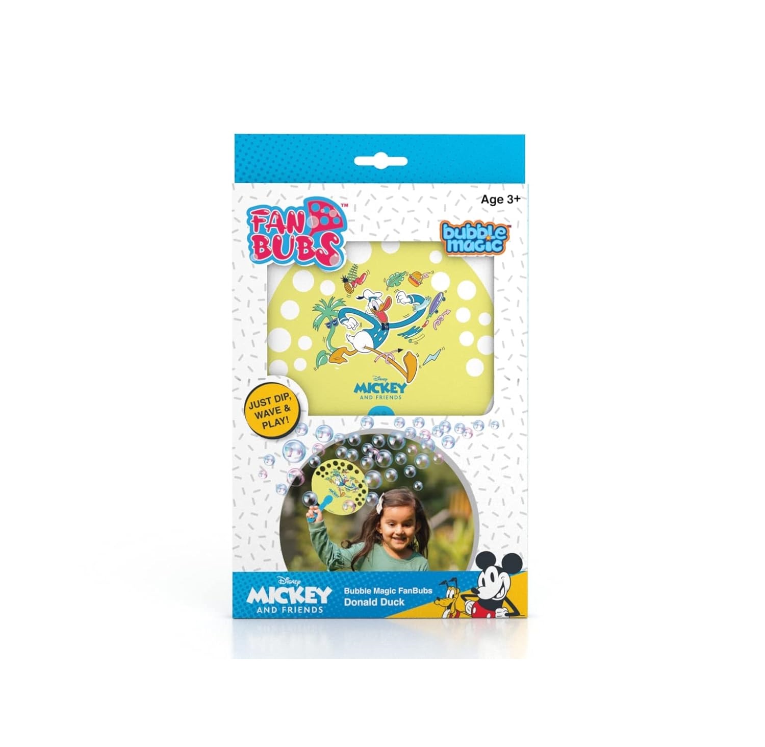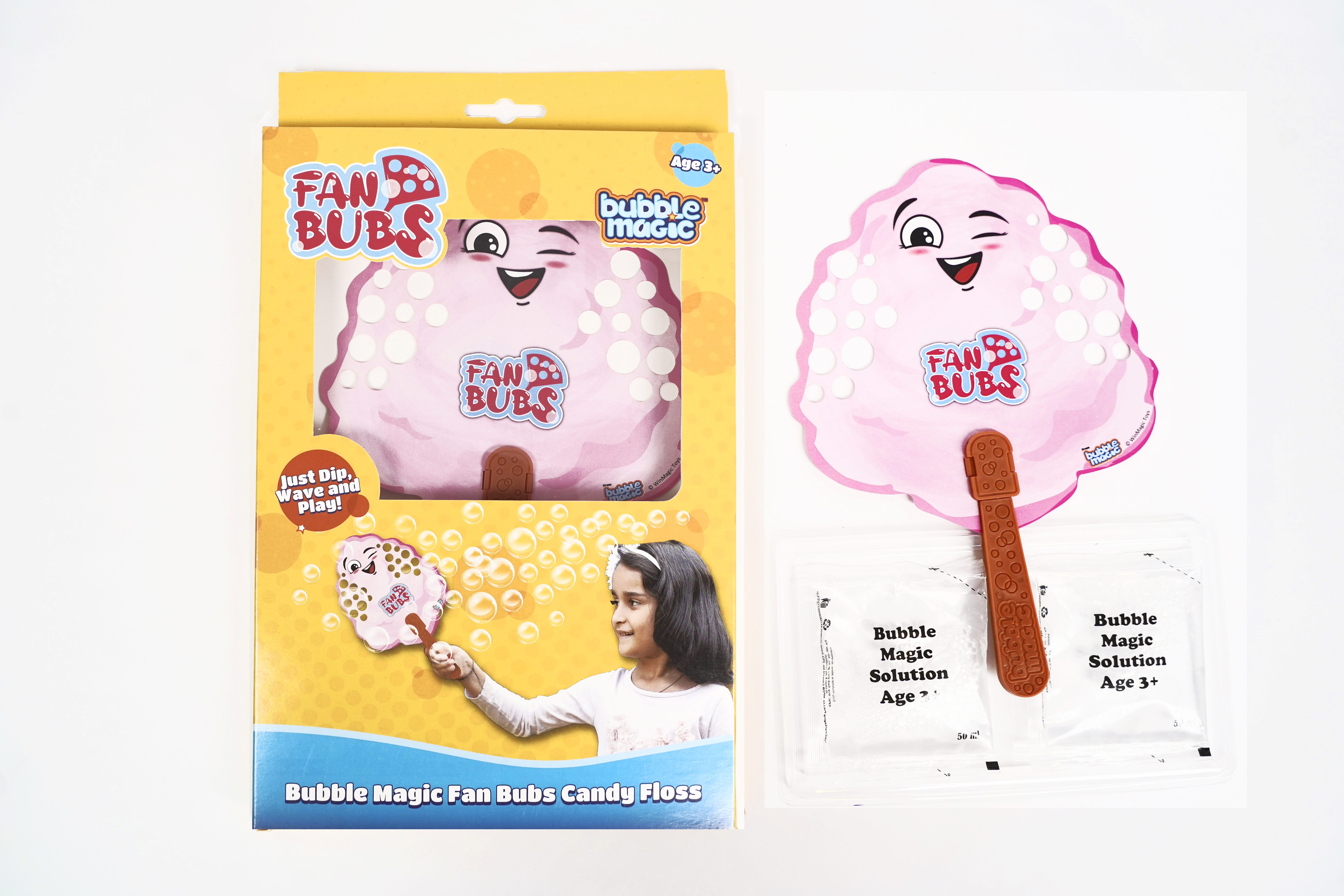 DIP, WAVE AND PLAY: Playing with Bubbles just got a lot more fun! Includes Candy Floss Fan Bub, 100 ml super long-lasting Bubble Solution and a convenient Dipping Tray. Just dip into the bubble solution and wave and play with bubbles all around. |