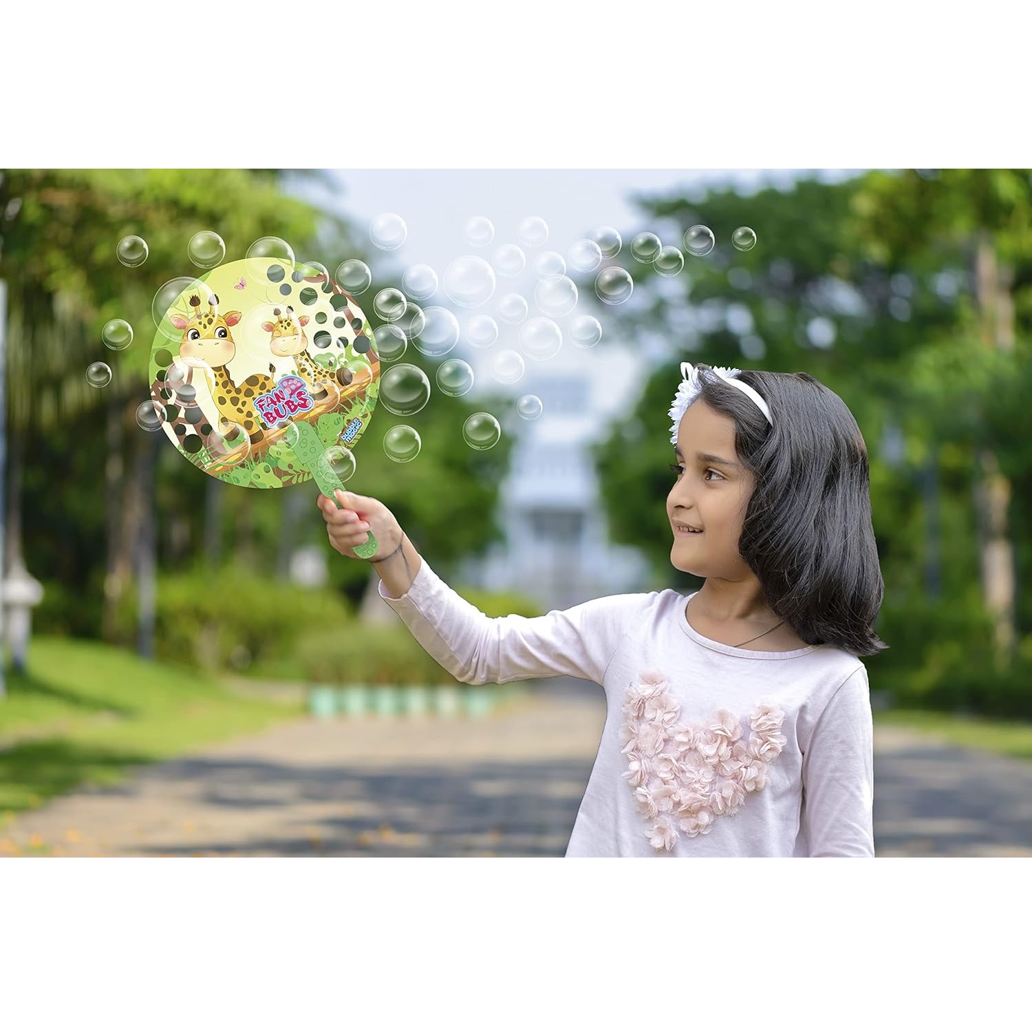 DIP, WAVE AND PLAY: Playing with Bubbles just got a lot more fun! Includes Giraffe Fan Bub, 100 ml super long-lasting Bubble Solution and a convenient Dipping Tray. Just dip into the bubble solution and wave and play with bubbles all around. Fan bubs is a super fun take on traditional handfans that blow bubbles. Isn’t that cool? |