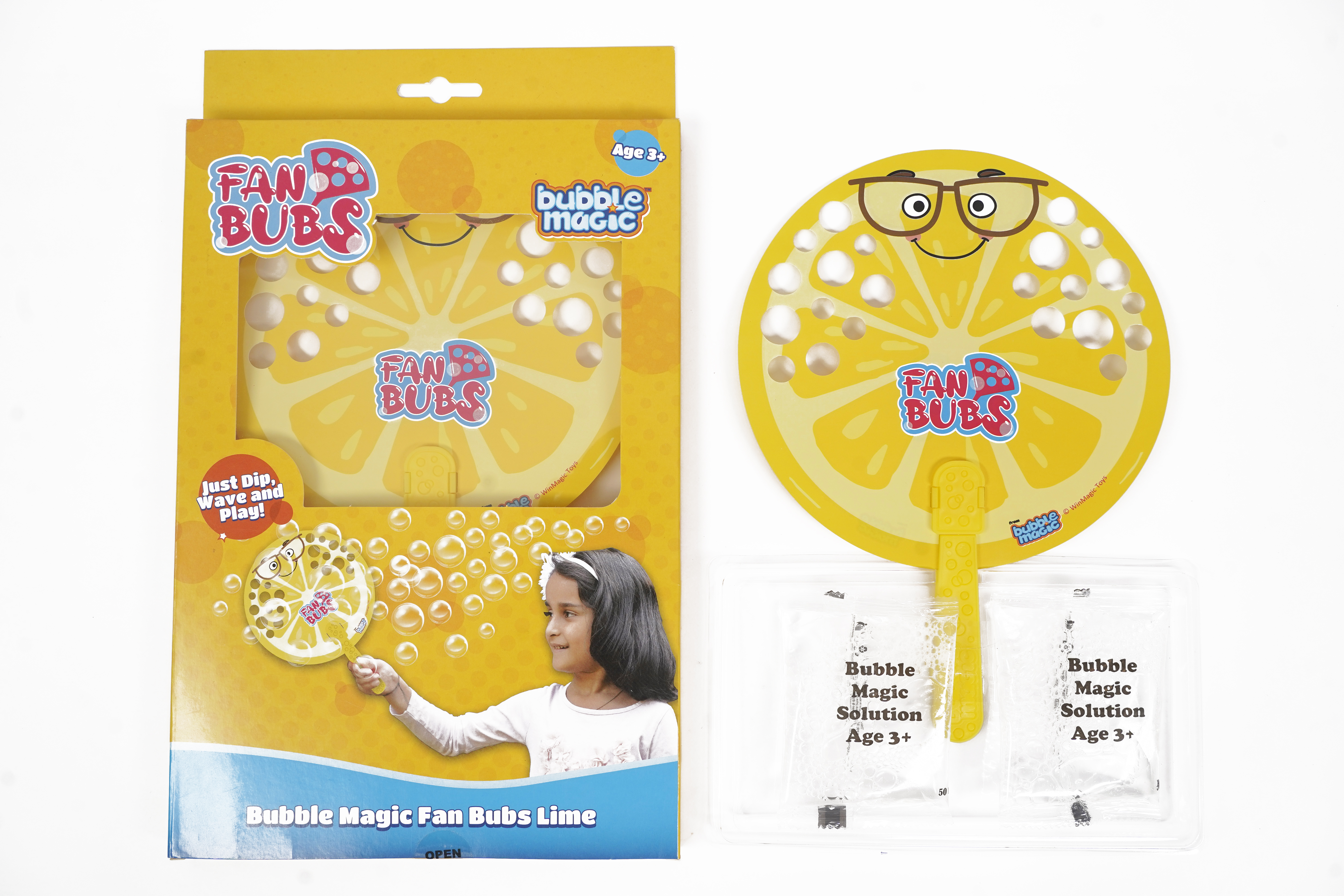 CUTE FRUIT THEME: This edition of the Bubble Magic Fan Bubs takes bubble blowing to the next level! Enter the refreshing and fruity universe with this Bright & Tangy Lime Fab bub Lime Fan Bub and never get bored of blowing bubbles ever again. |
