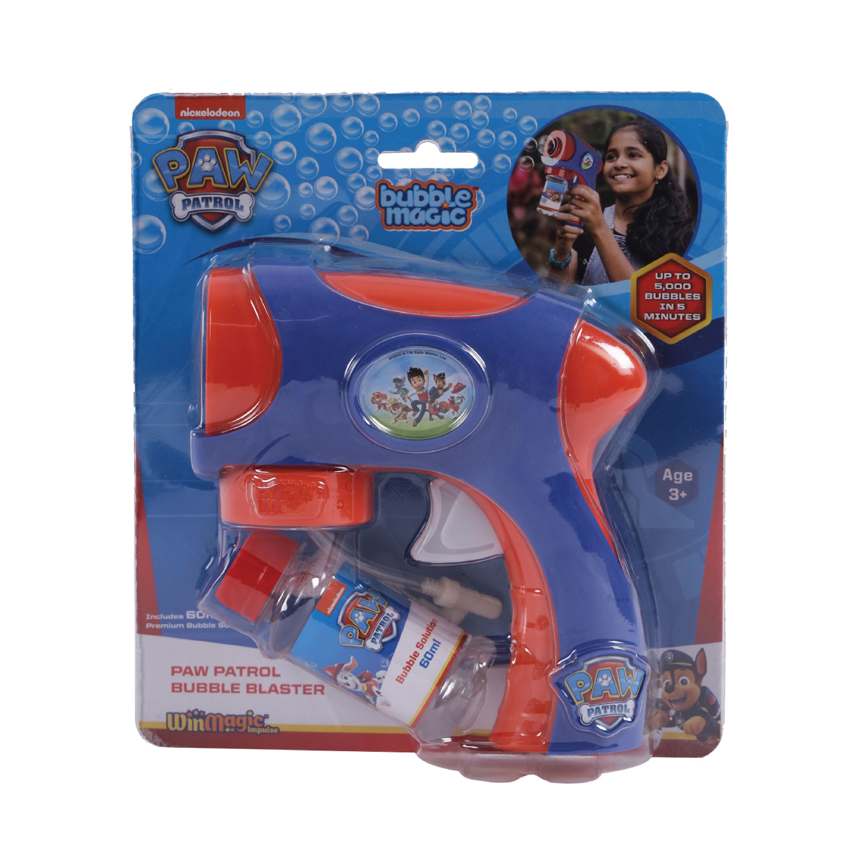 PAW PATROL THEME: This edition of the Bubble Magic Bubble Blaster takes bubble blowing to the next level! Enter the iconic Paw Patrol universe with this unique Paw Patrol Bubble Blaster and never get bored of blowing bubbles ever again. |