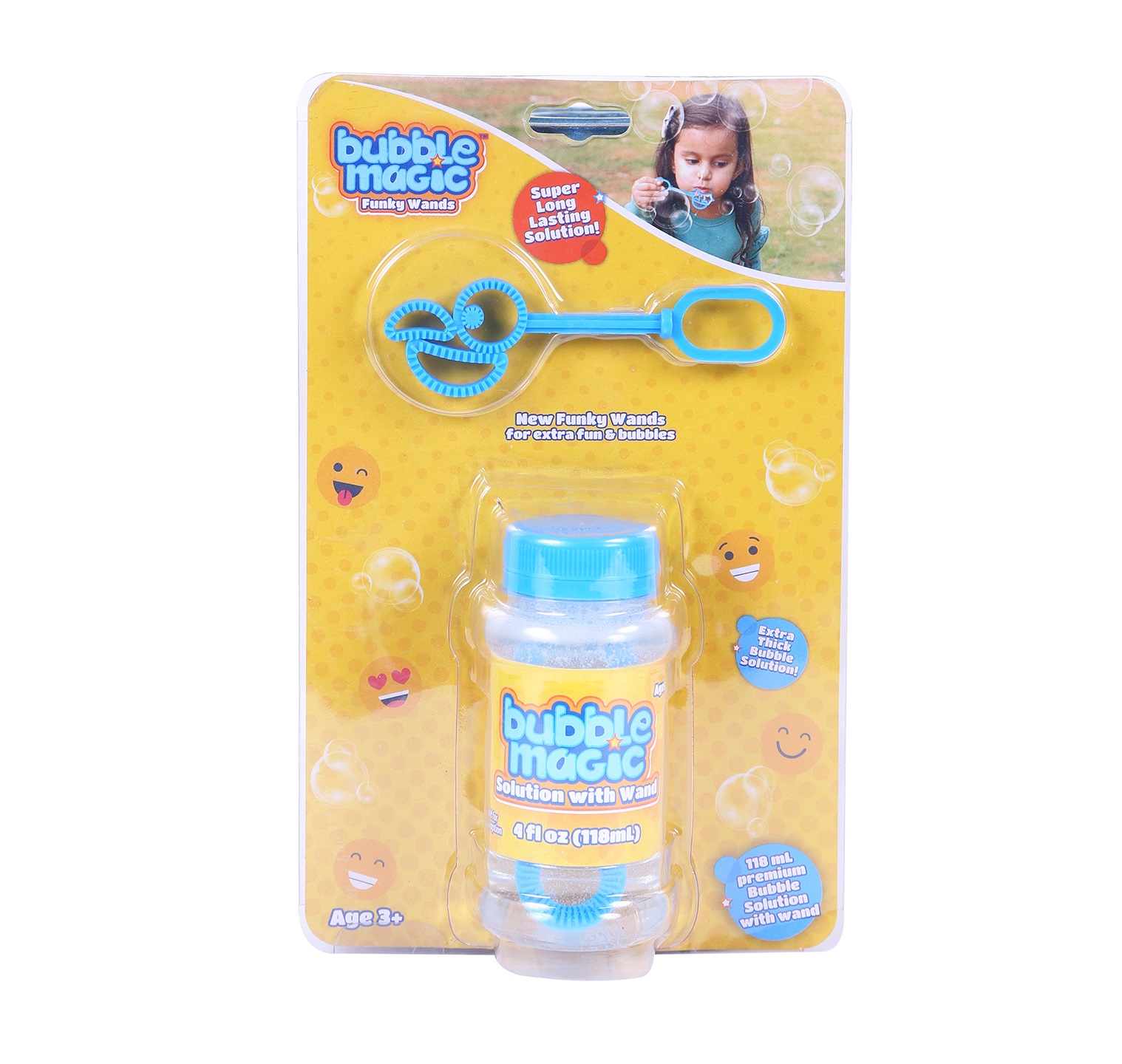 Includes a Funky Emoji Wand and super long-lasting Bubble Solution (118ml) for safe and easy bubble fun. |