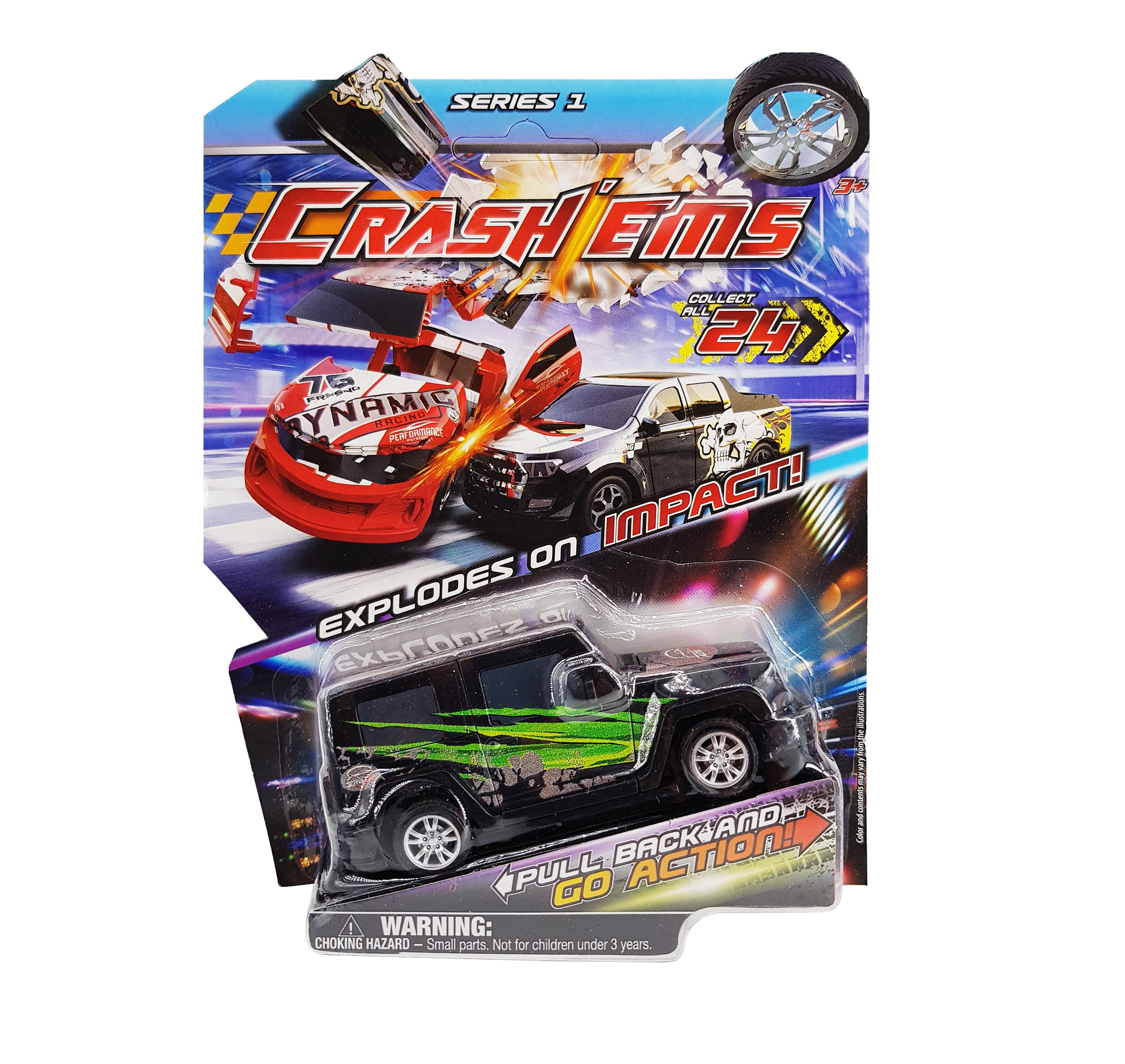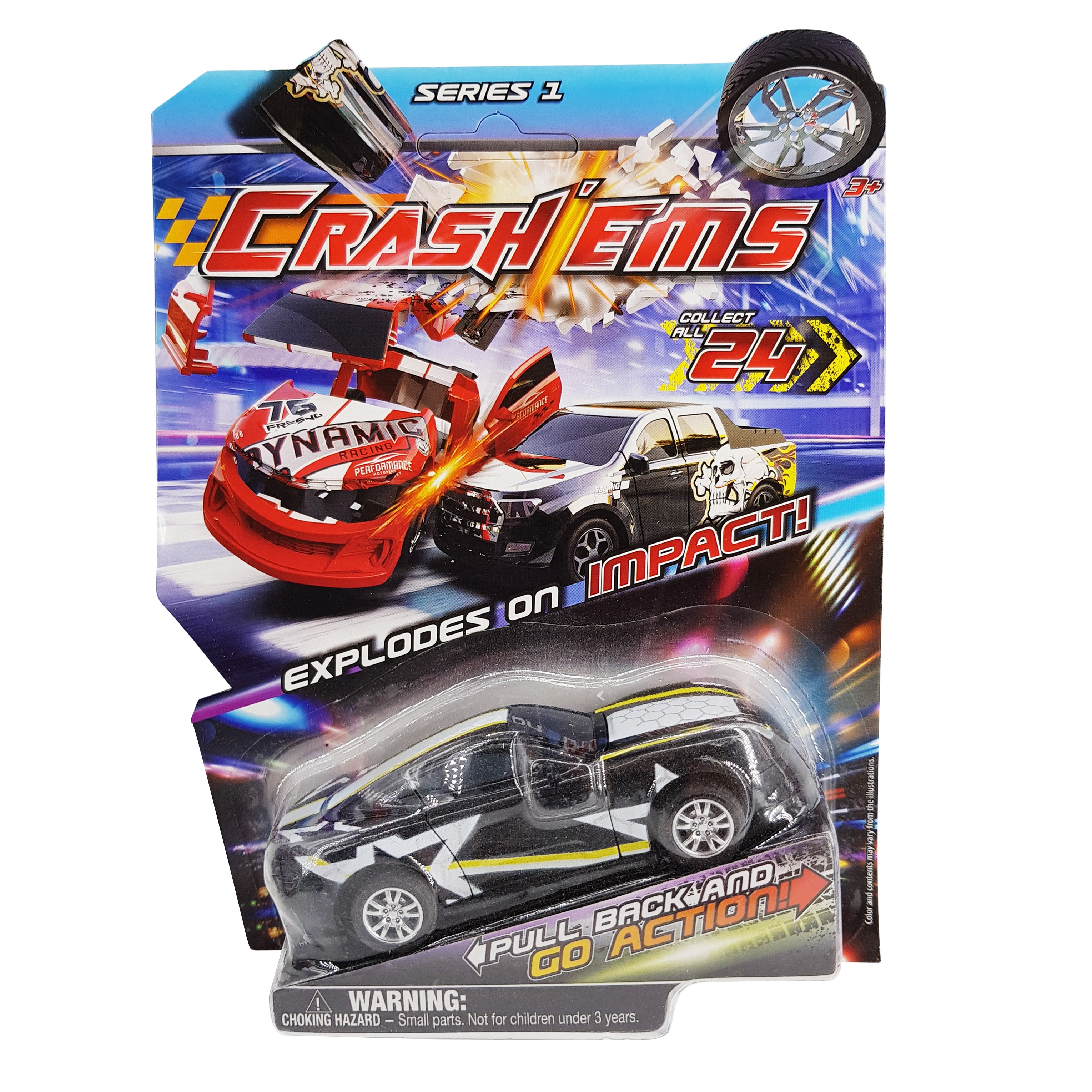 Re-create the action of cars crashing just like in the movies with the all-new Crash'ems. Kids will have a blast having action and adventures of their own with Crash'ems |