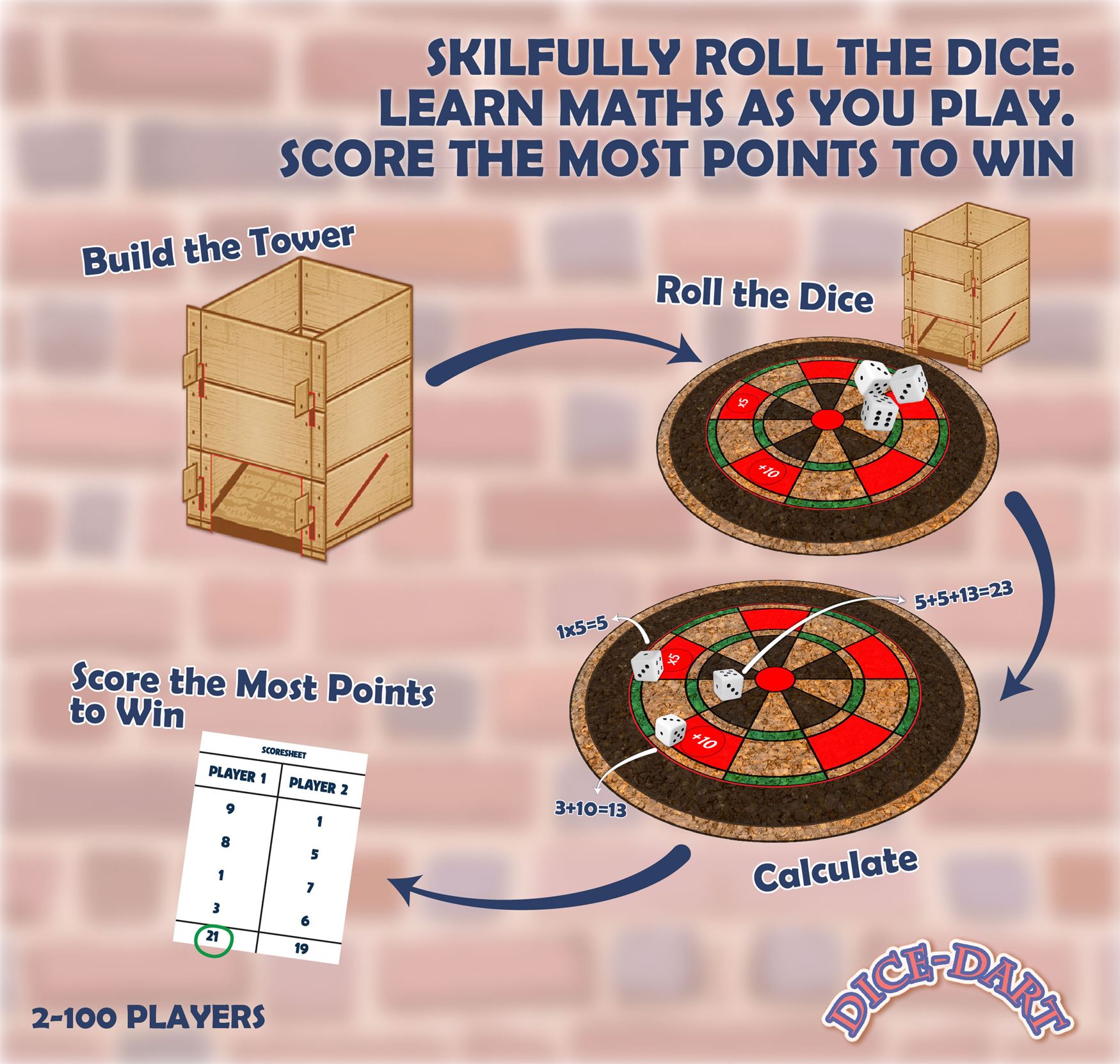 Adaptable Gameplay: Dart Dice can be easily adapted to accommodate different group sizes and playing environments. Whether you're playing with a small group of friends or hosting a larger party, the game can be scaled up or down to suit the occasion, ensuring everyone can join in on the fun. |
