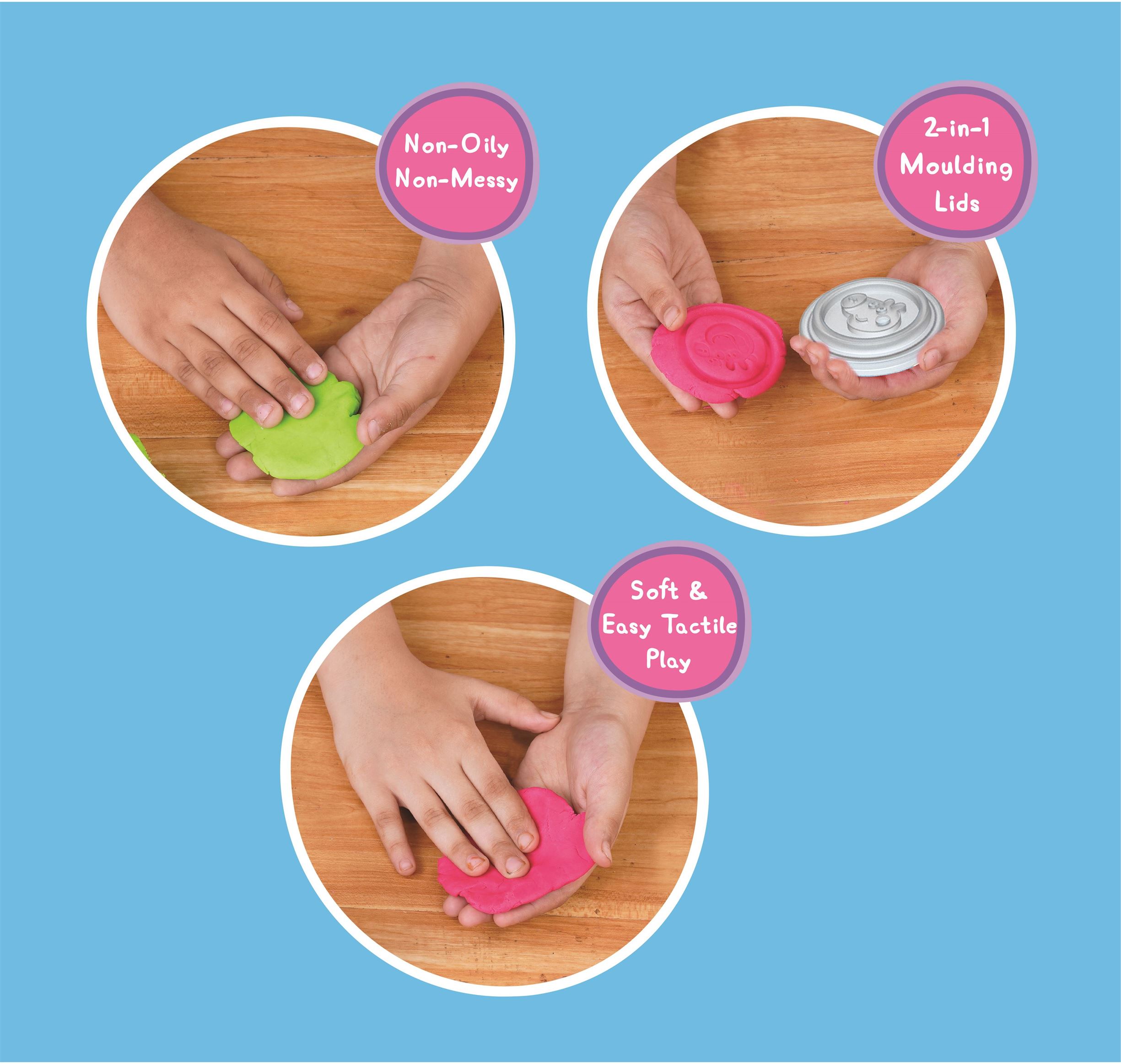 Mould iconic characters like Peppa and her family using double-sided lids. Explore letters, numbers, and characters through creative play. The set includes Peppa Pig shaped moulds for endless fun!
