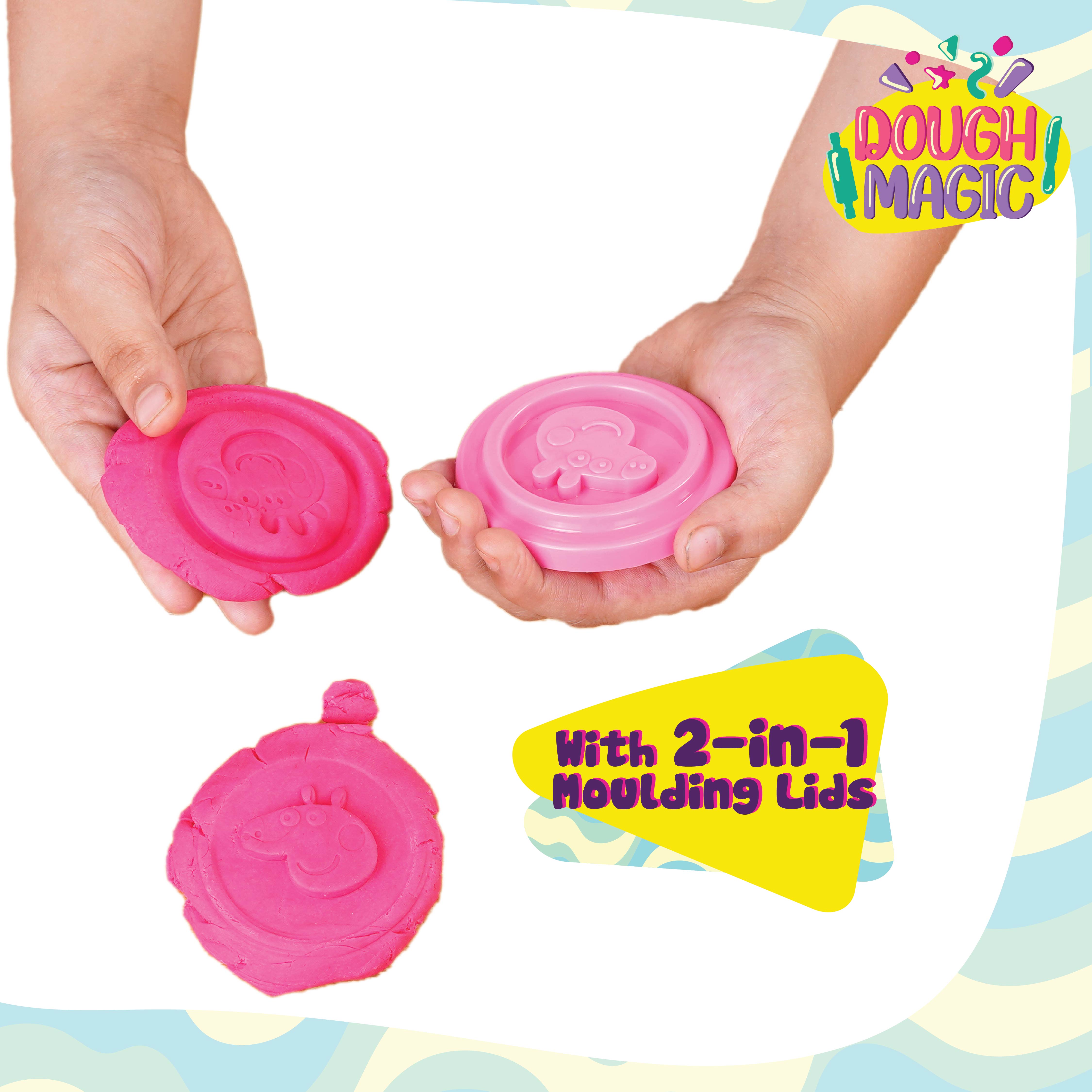 Dough Tubs with 2 in 1 moulding lids for an embossed and debossed impression. Motor Skill development, Learn & Identify Shapes, Boosts Imagination & Creativity with Non-Greasy, super soft dough |