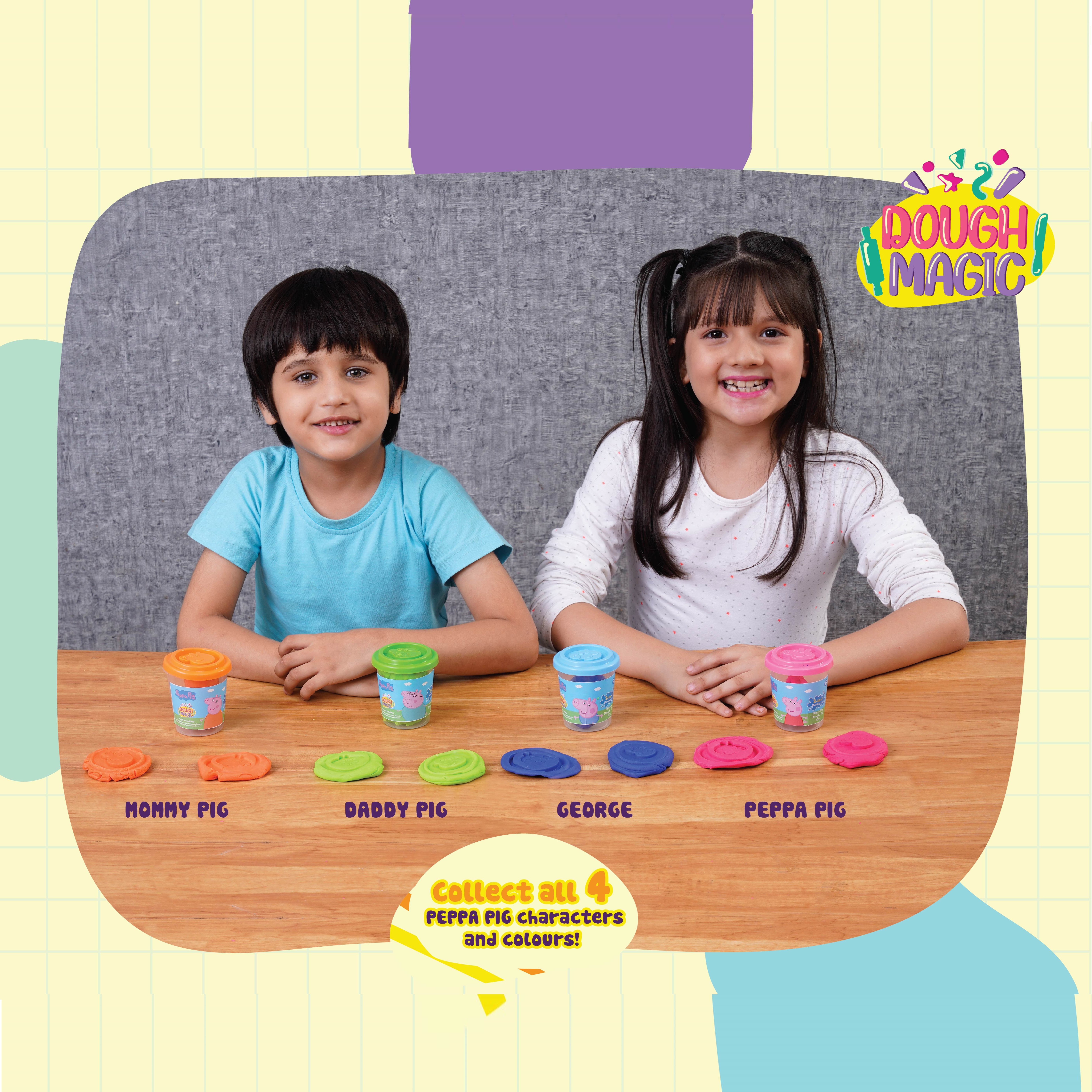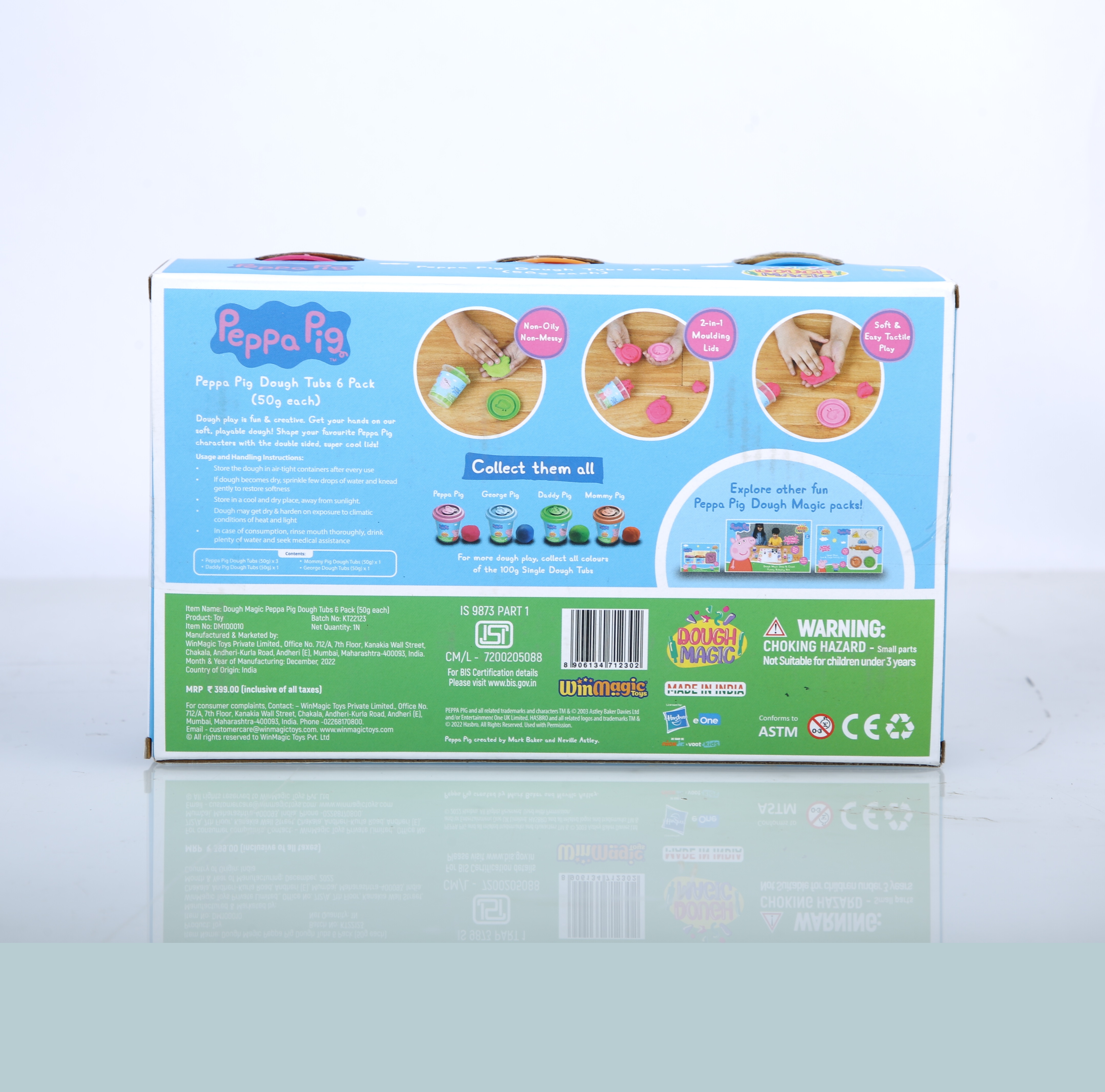 An assortment of 6 Peppa Pig dough tubs of 50 g each. Comes In The Assortment of 3 Baby Shark Tubs, 1 Mommy Shark Tubs, 1 Daddy Shark Tubs And 1 William Tubs |