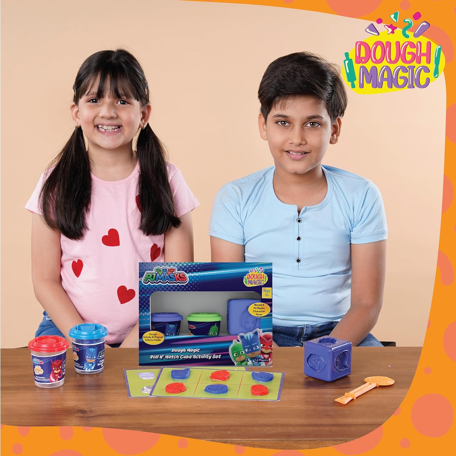 A unique dough activity set with a never seen before cube mould. Mould 6 PJ Masks character faces using this cube mould and complete your template card. |