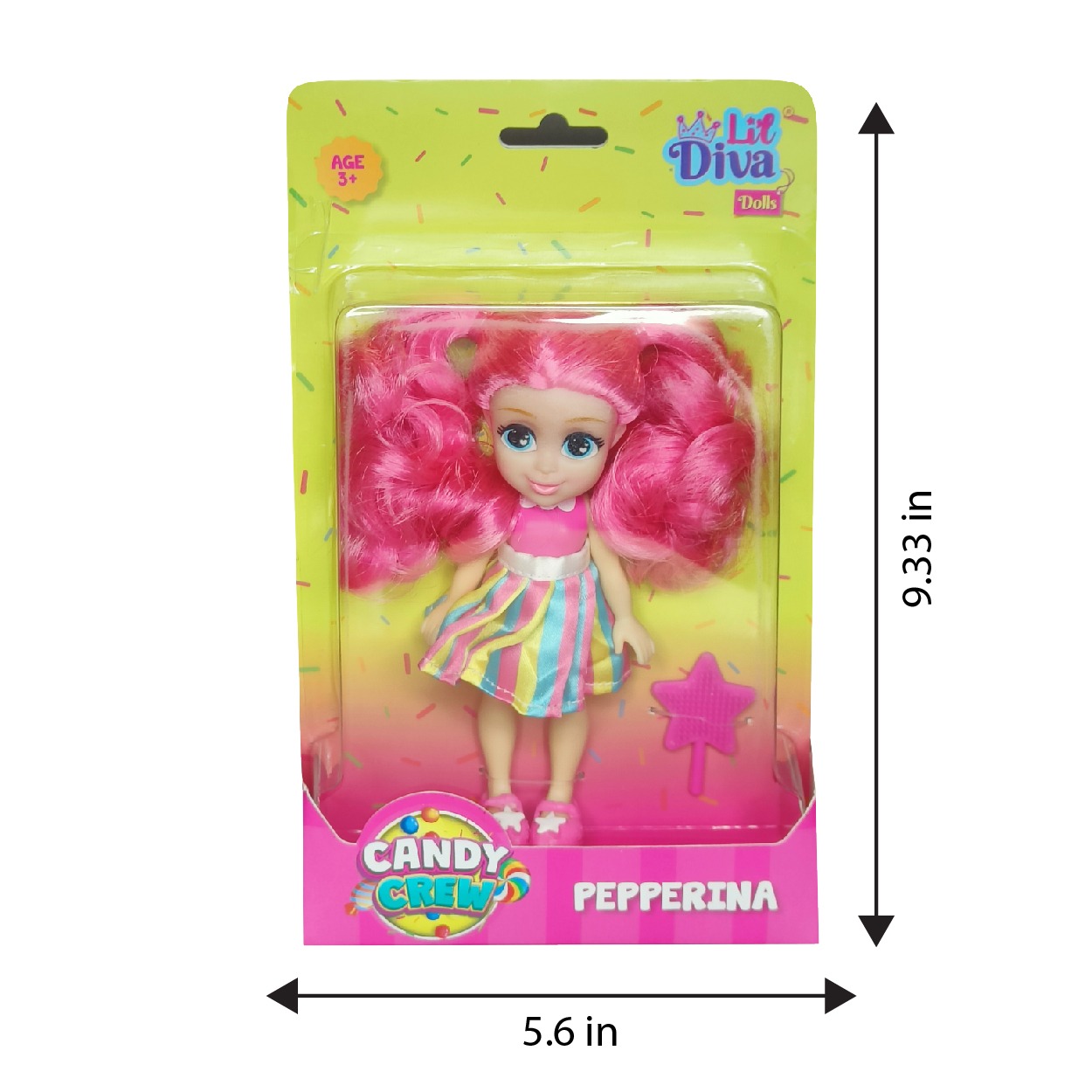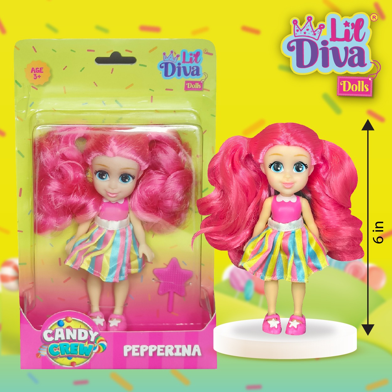 Meet Candy Crew's Pepperina, the sweetest friend you'll ever have! Dressed in a fun candy-themed outfit, she’s ready for delightful adventures filled with imagination and charm. Brush and style her sugary hair! Whether you're creating fun stories or simply enjoying her cheerful style, the Candy Crew Doll is the perfect companion for hours of playful fun!