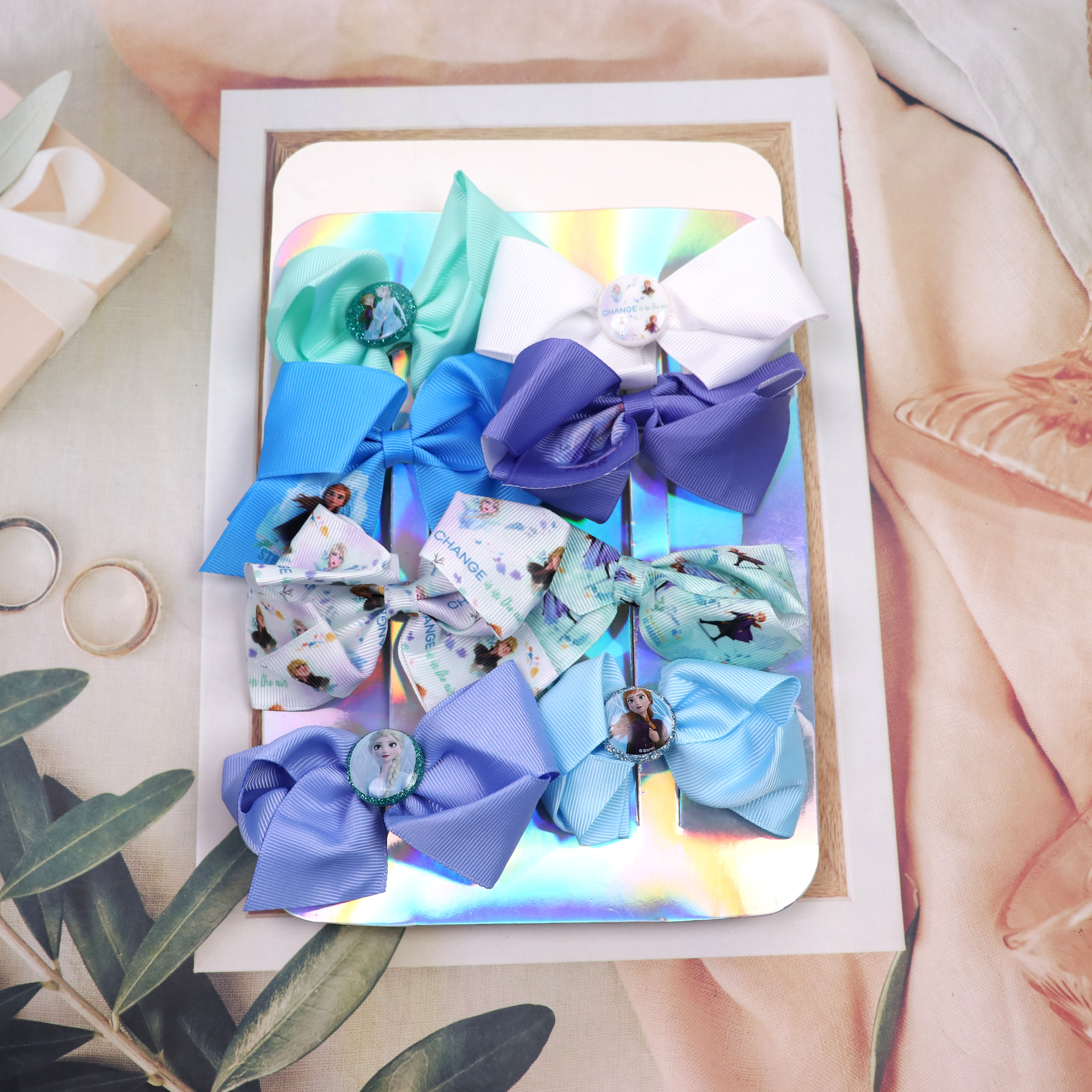 The pack contains 8 bow clips in different colours & prints, packed in a compact carry along PVC backpack |