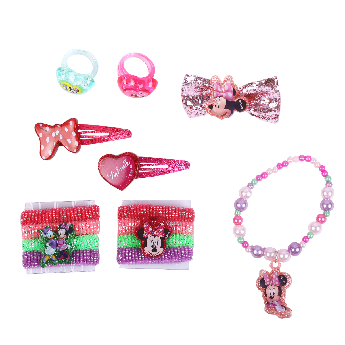 A pack of 14 accessories with all things shimmer & shine! The pack includes glitter rubber bands, snap clips & bows, along with a beaded bracelet and rings |