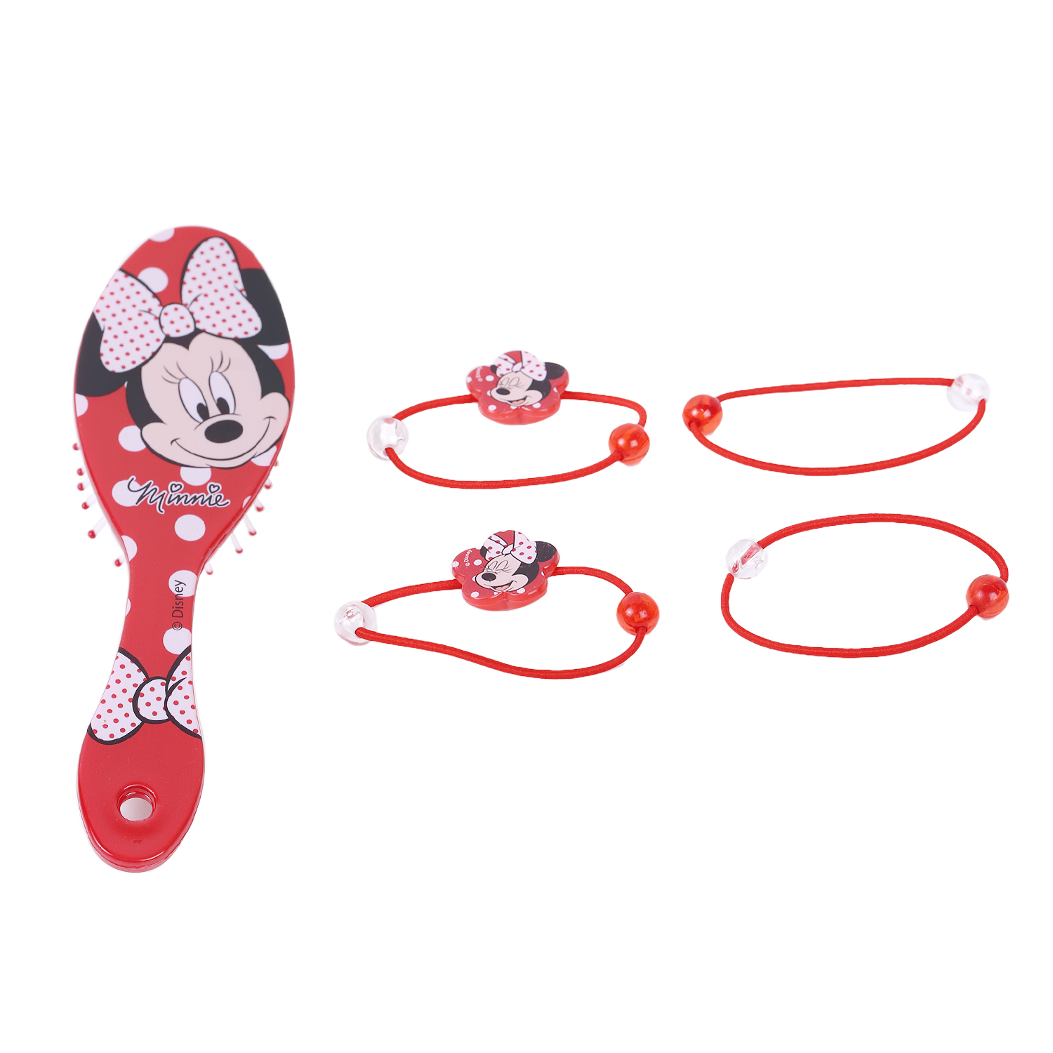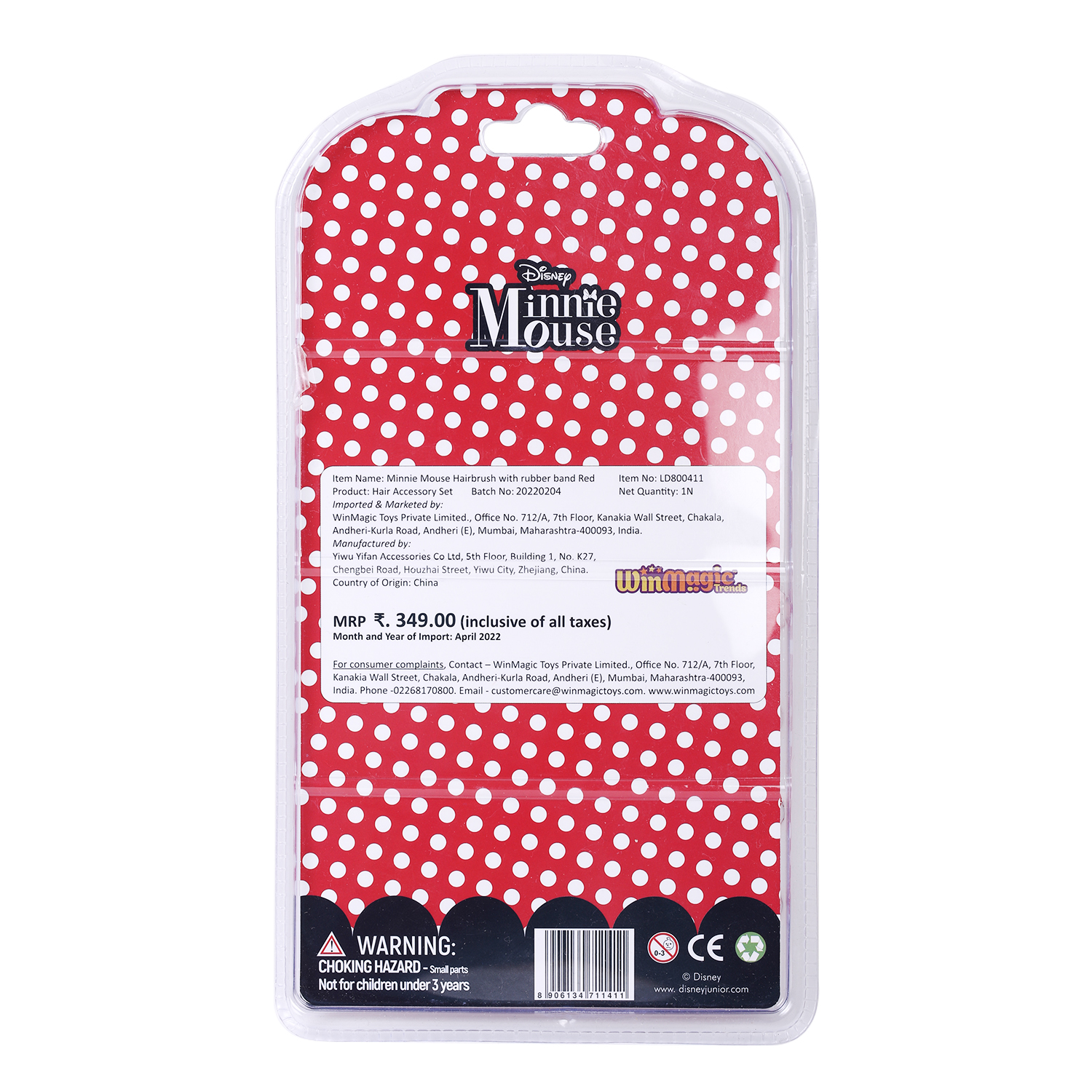 Package Includes A Combination of 1 Minnie Mouse Hair Brush And 4 Rubber Bands |