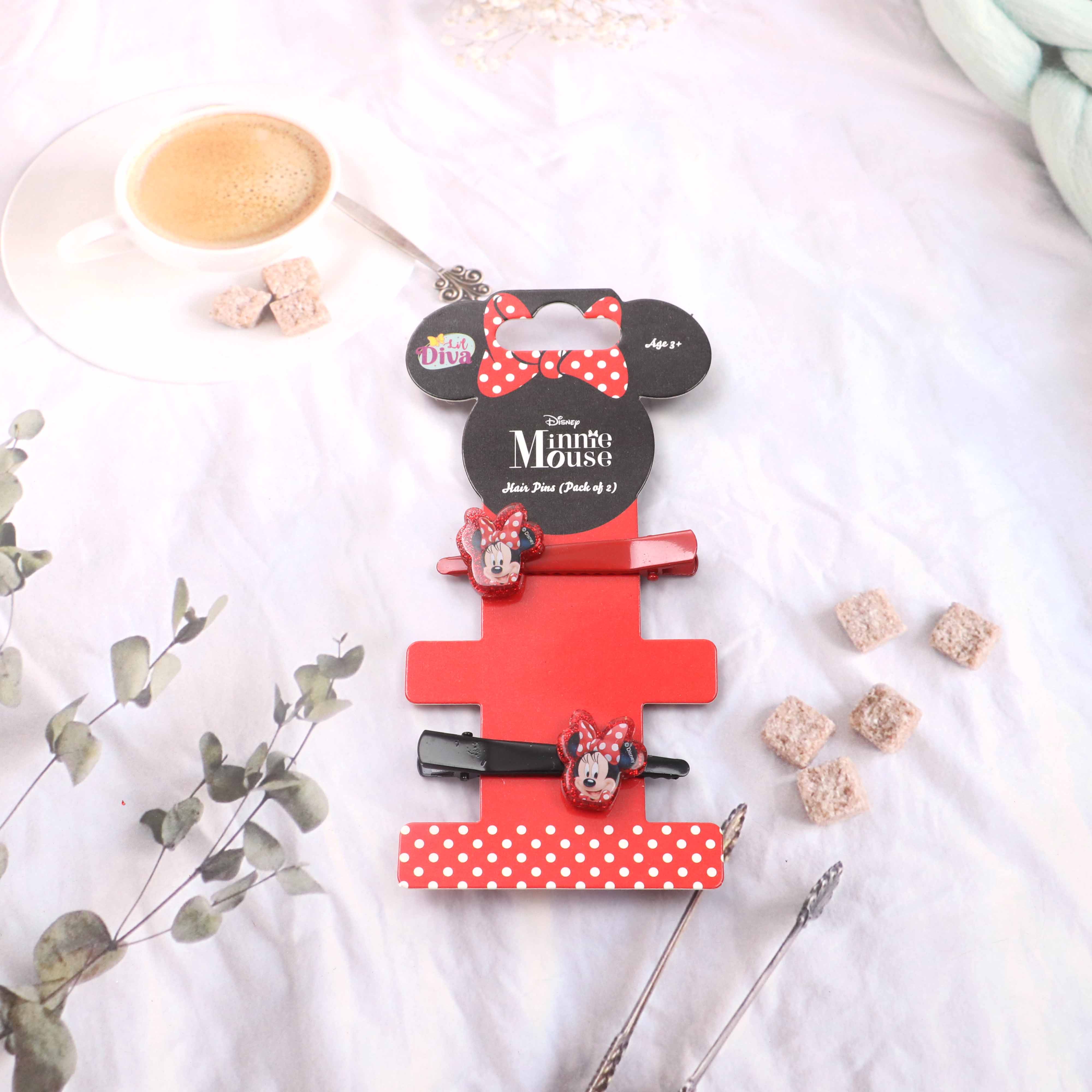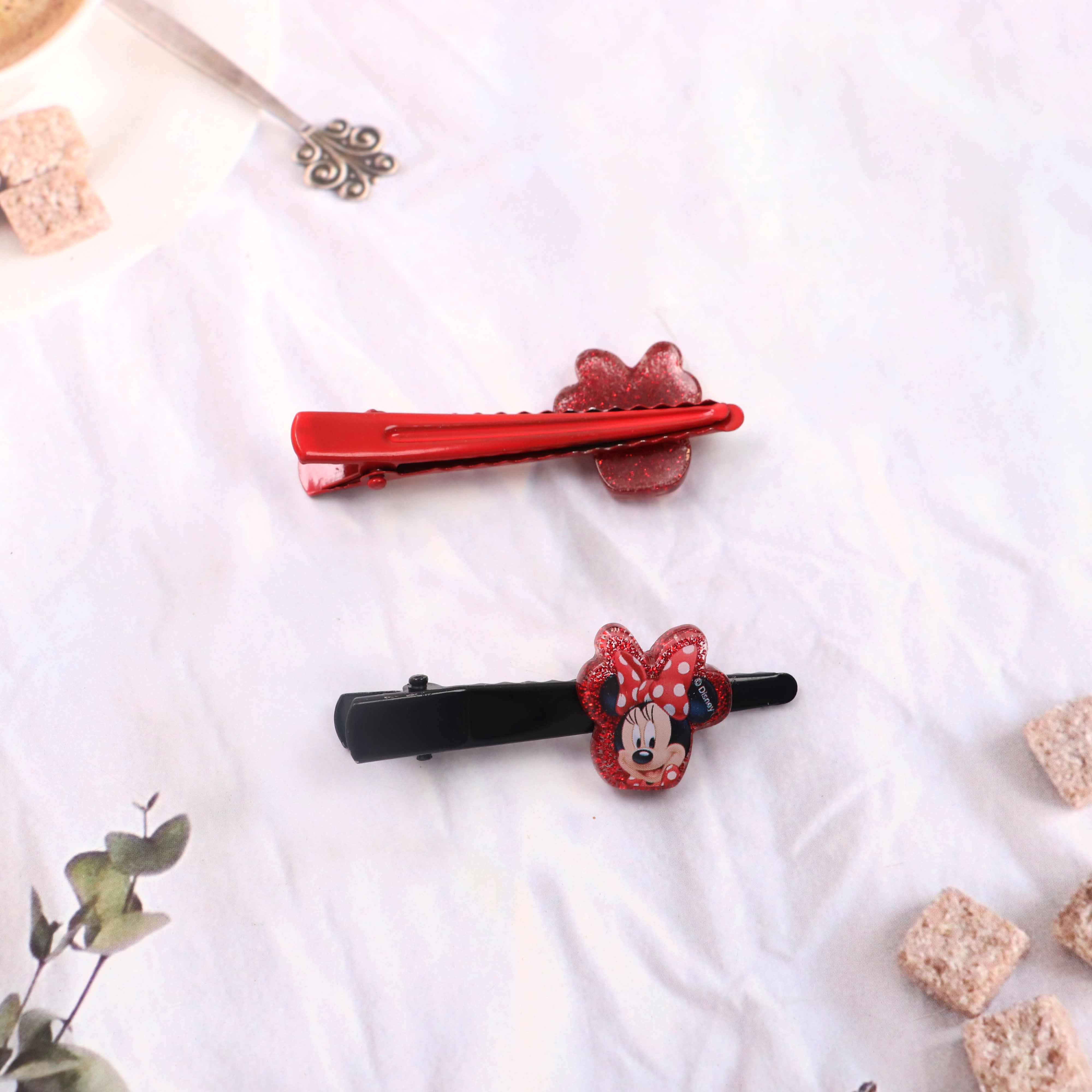 Pack of 2 red and black hair pins with Minnie Mouse charms |
