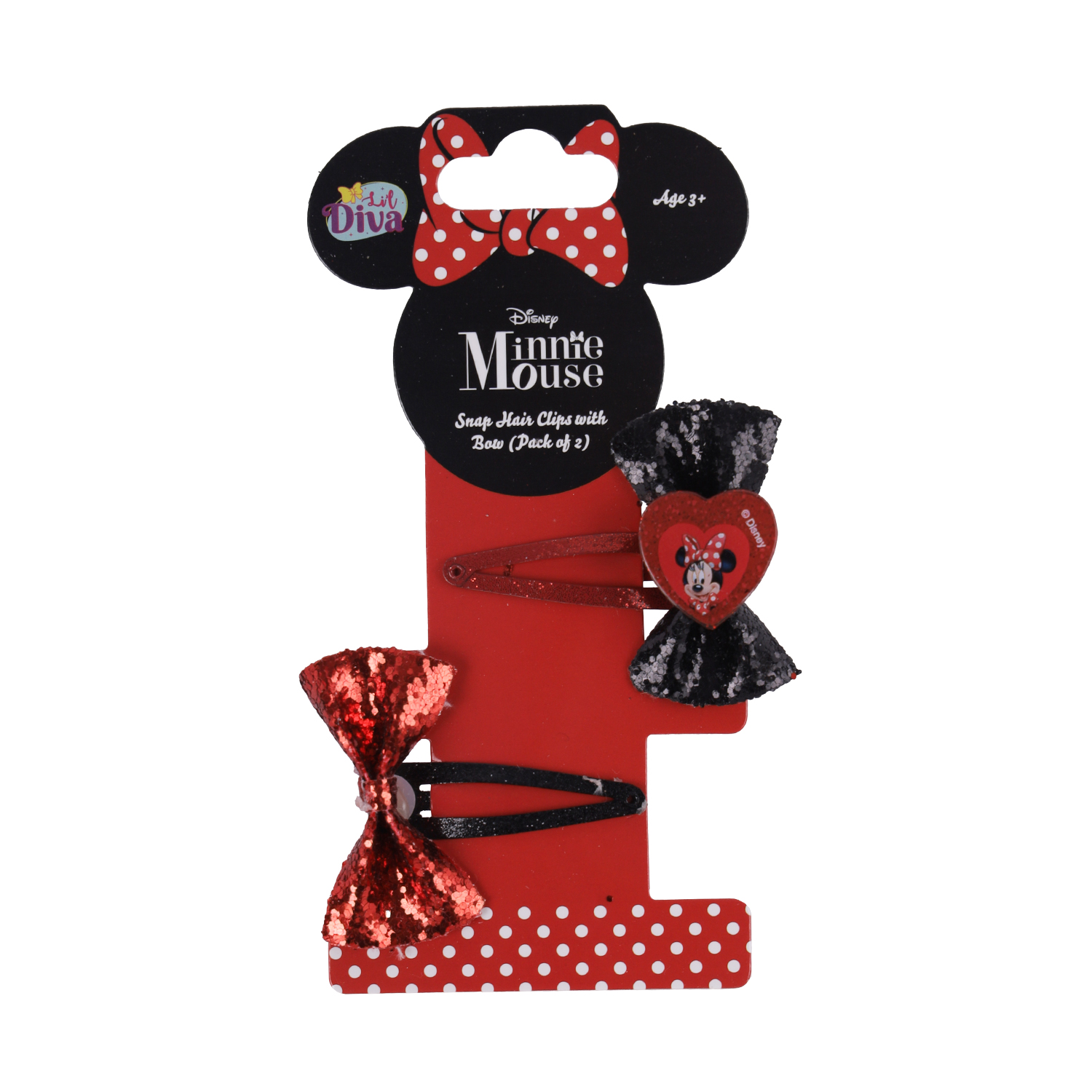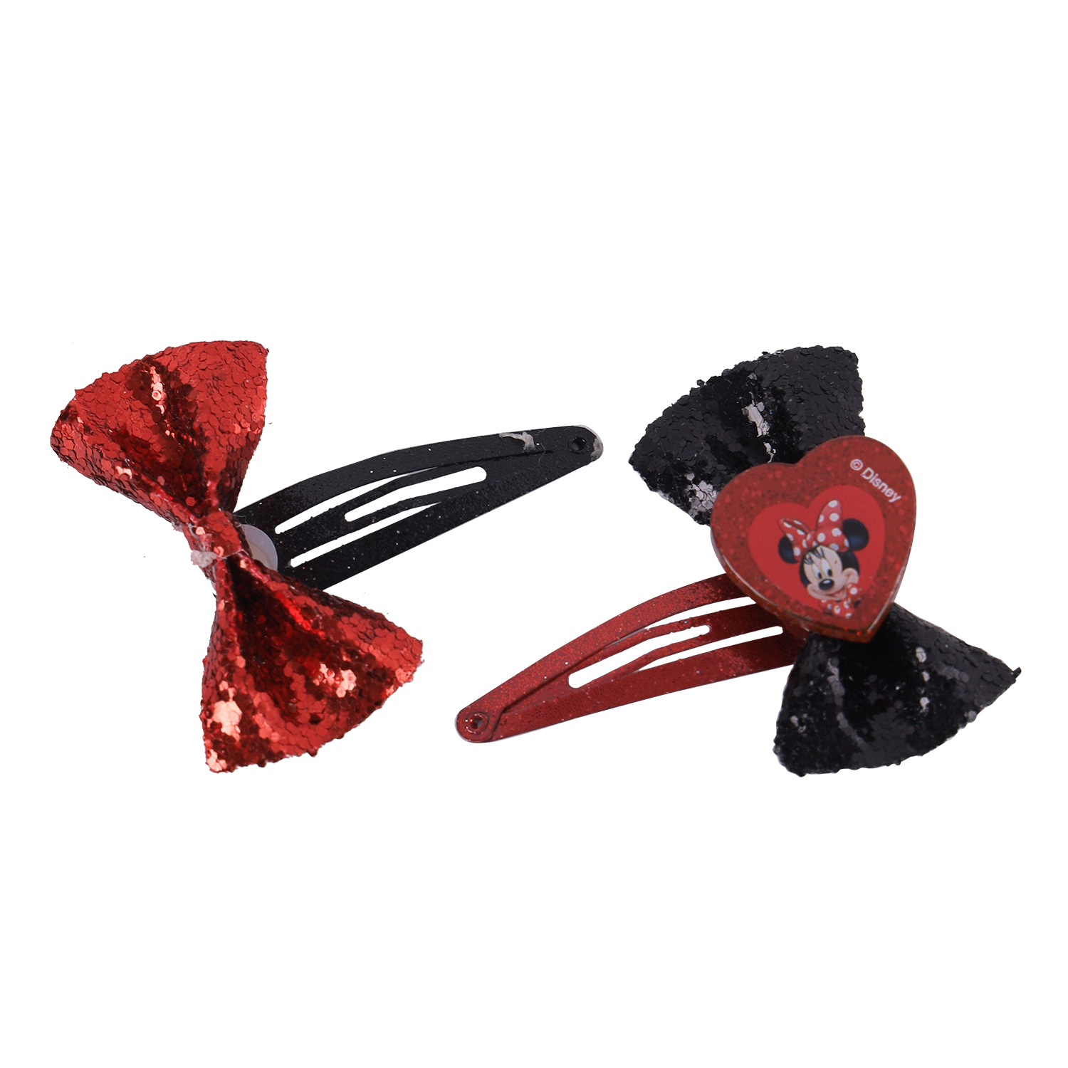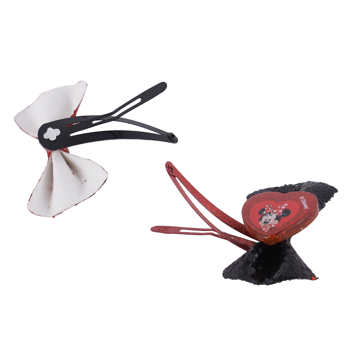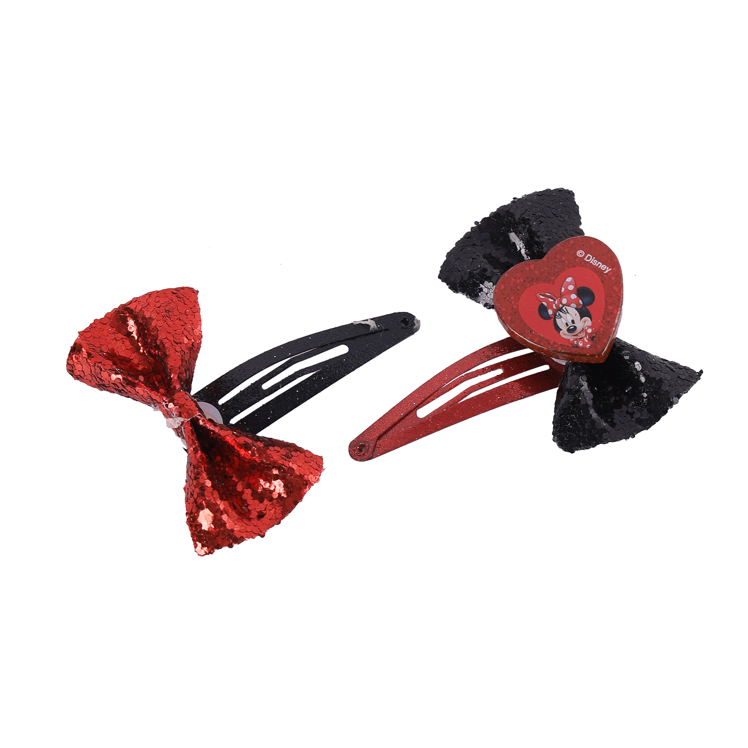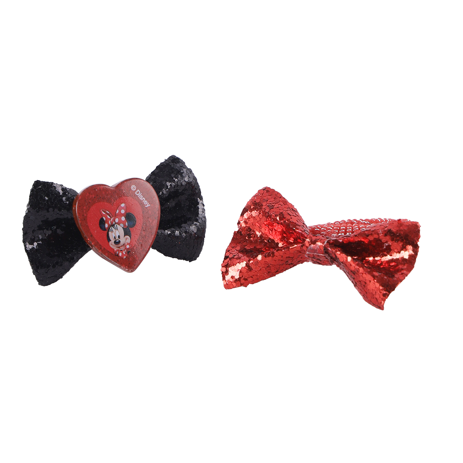 Pack of 2 red and black clips with Minnie Mouse bow shaped charms |