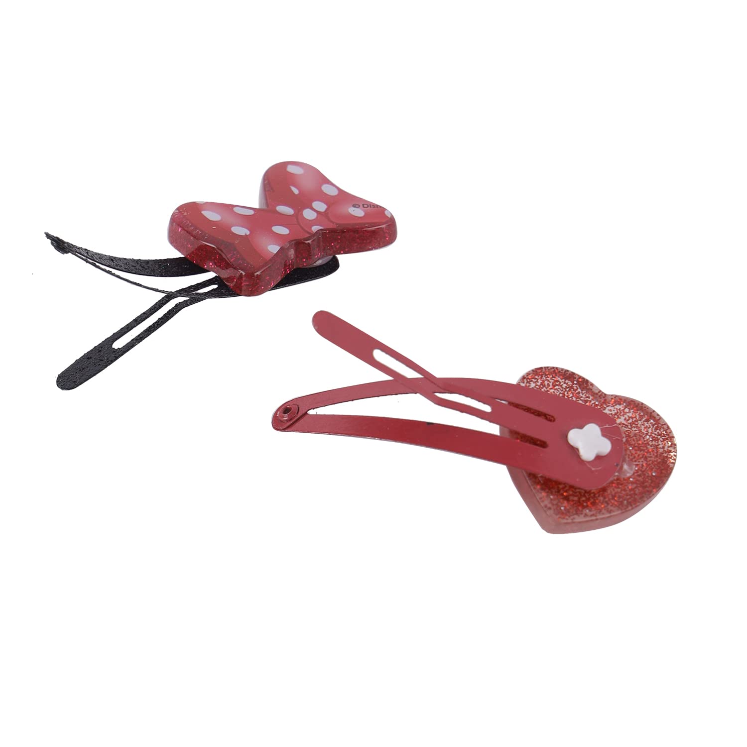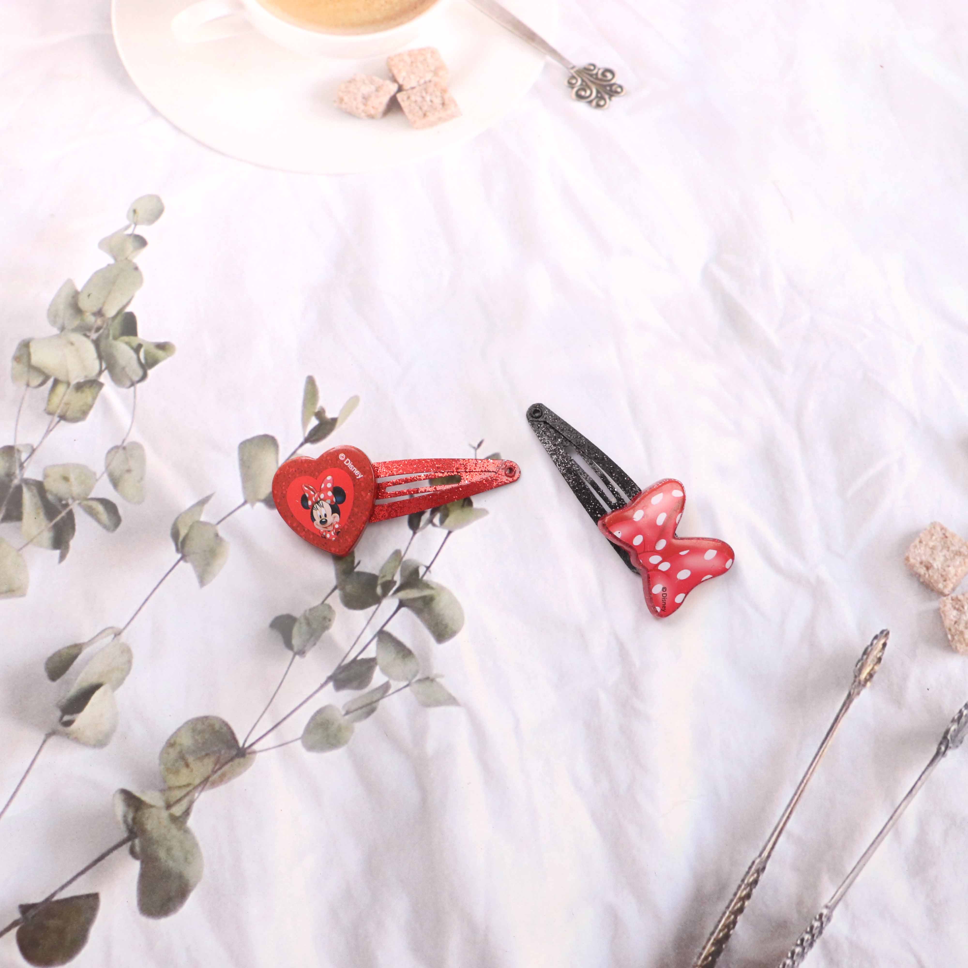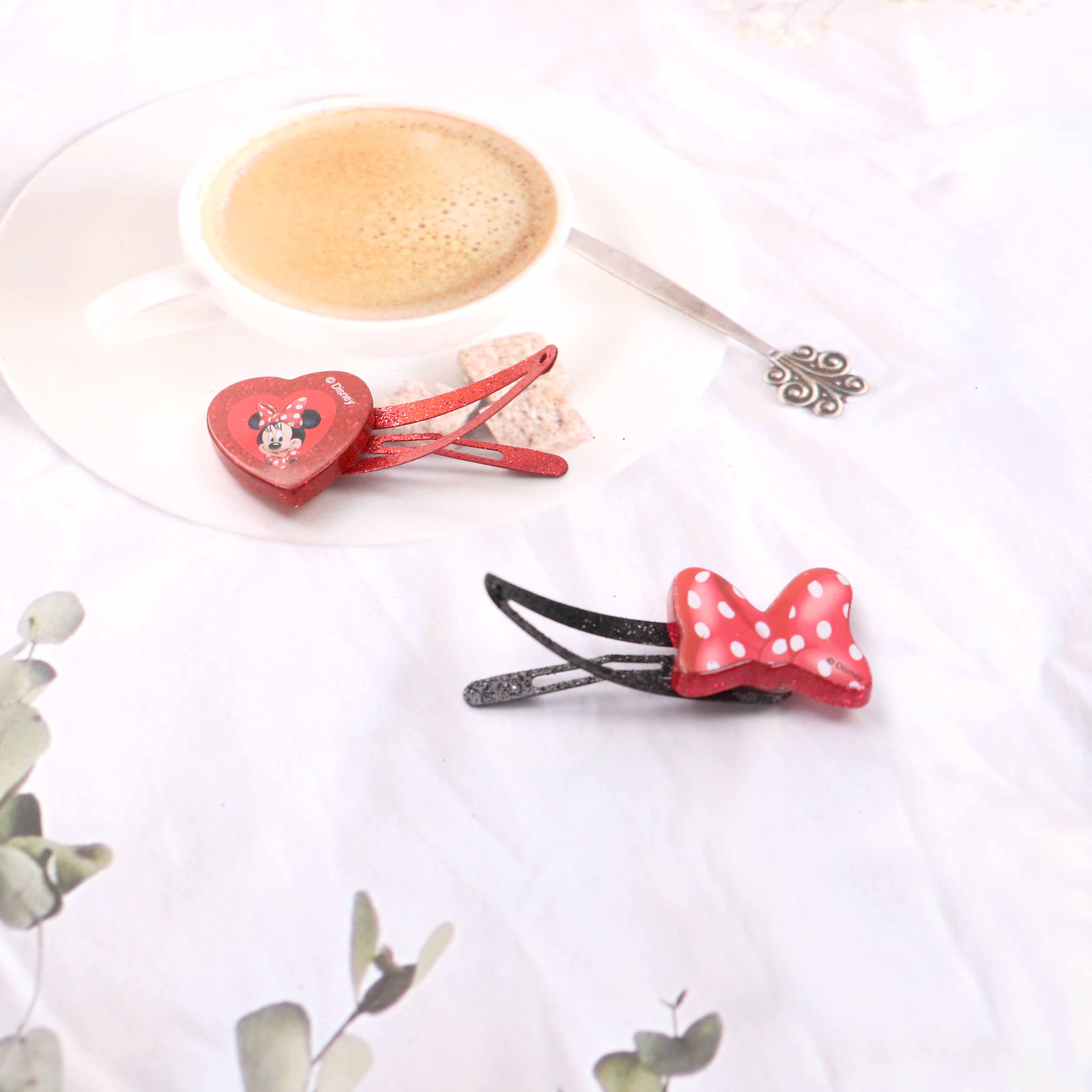 Pack of 2 red and black snap clips with Minnie Mouse charms |