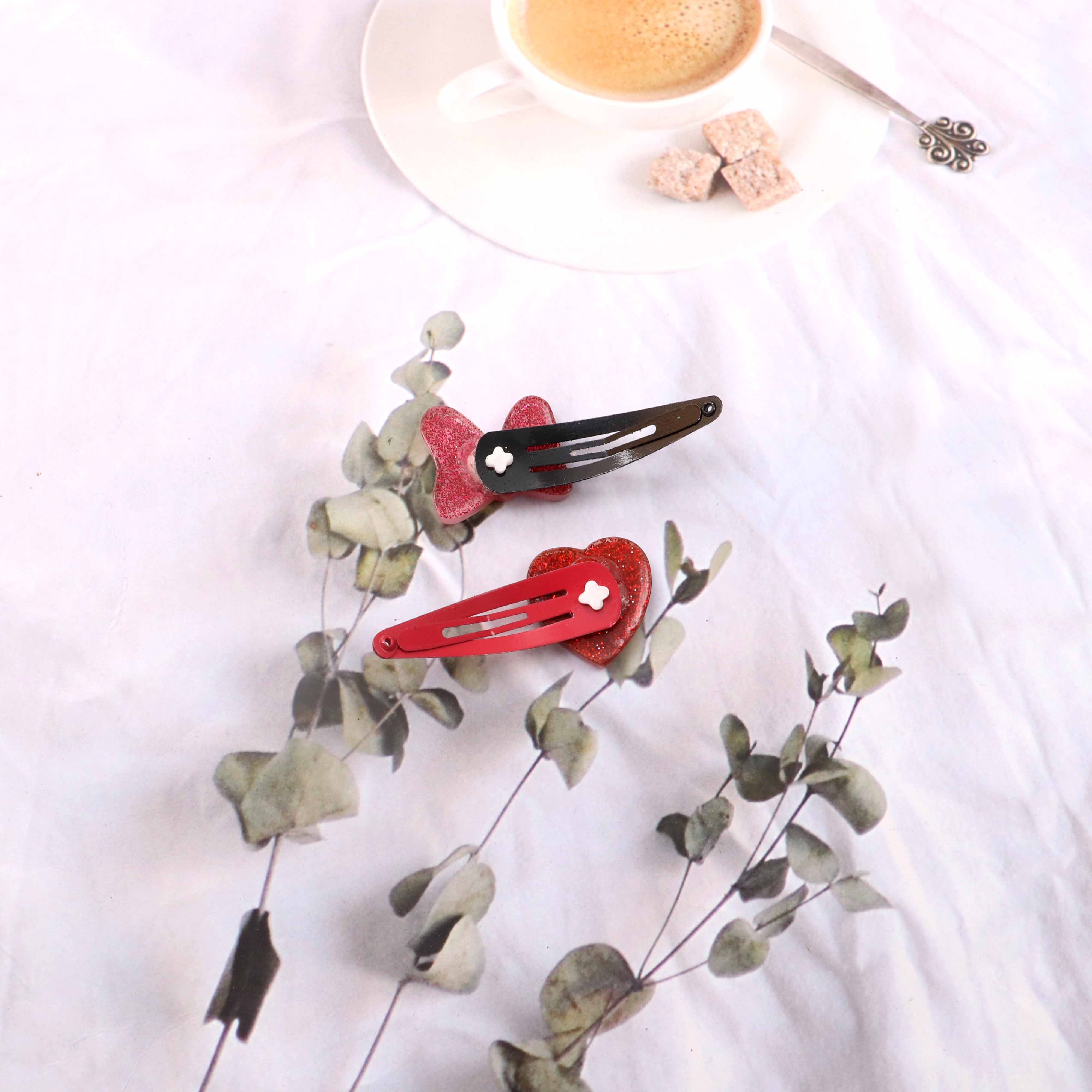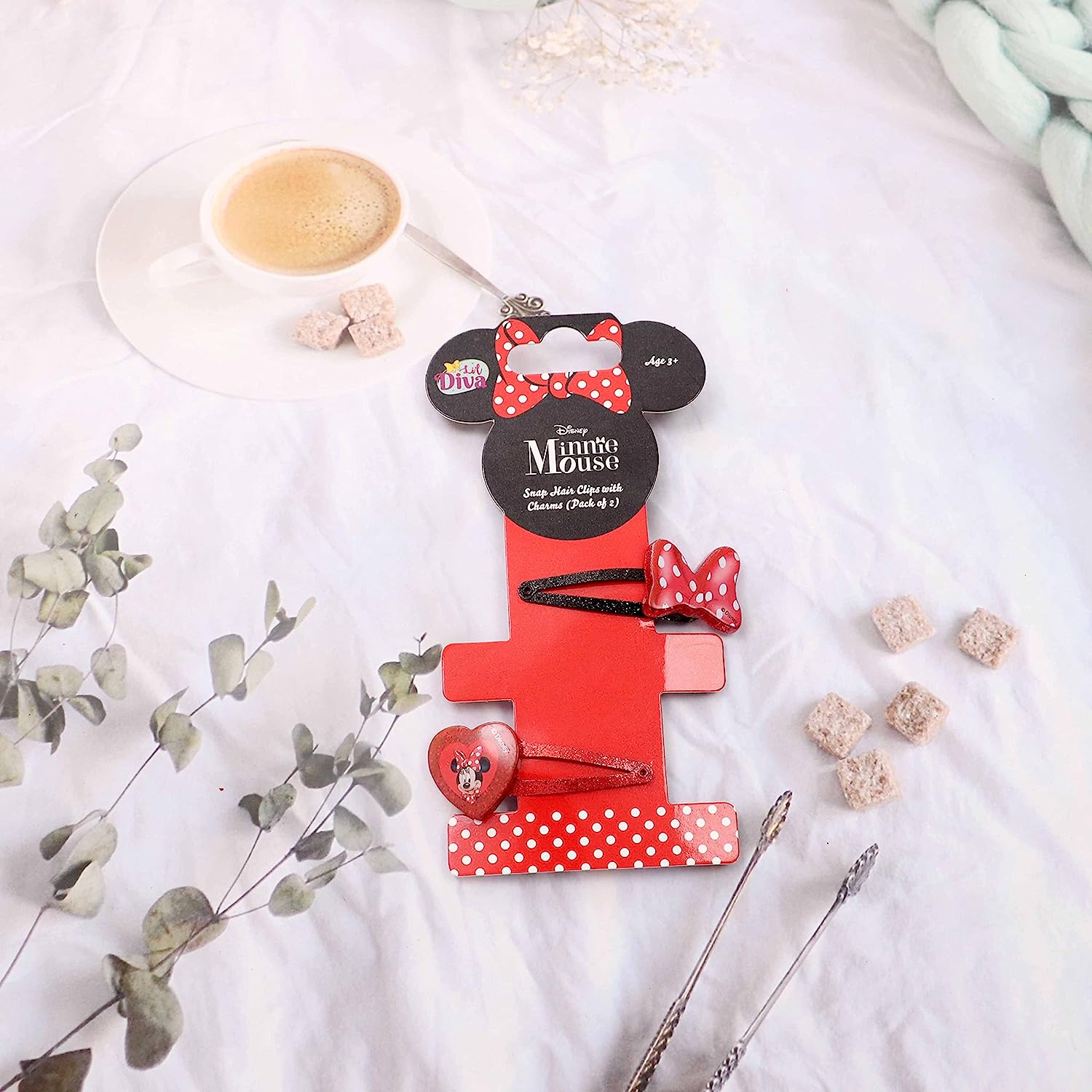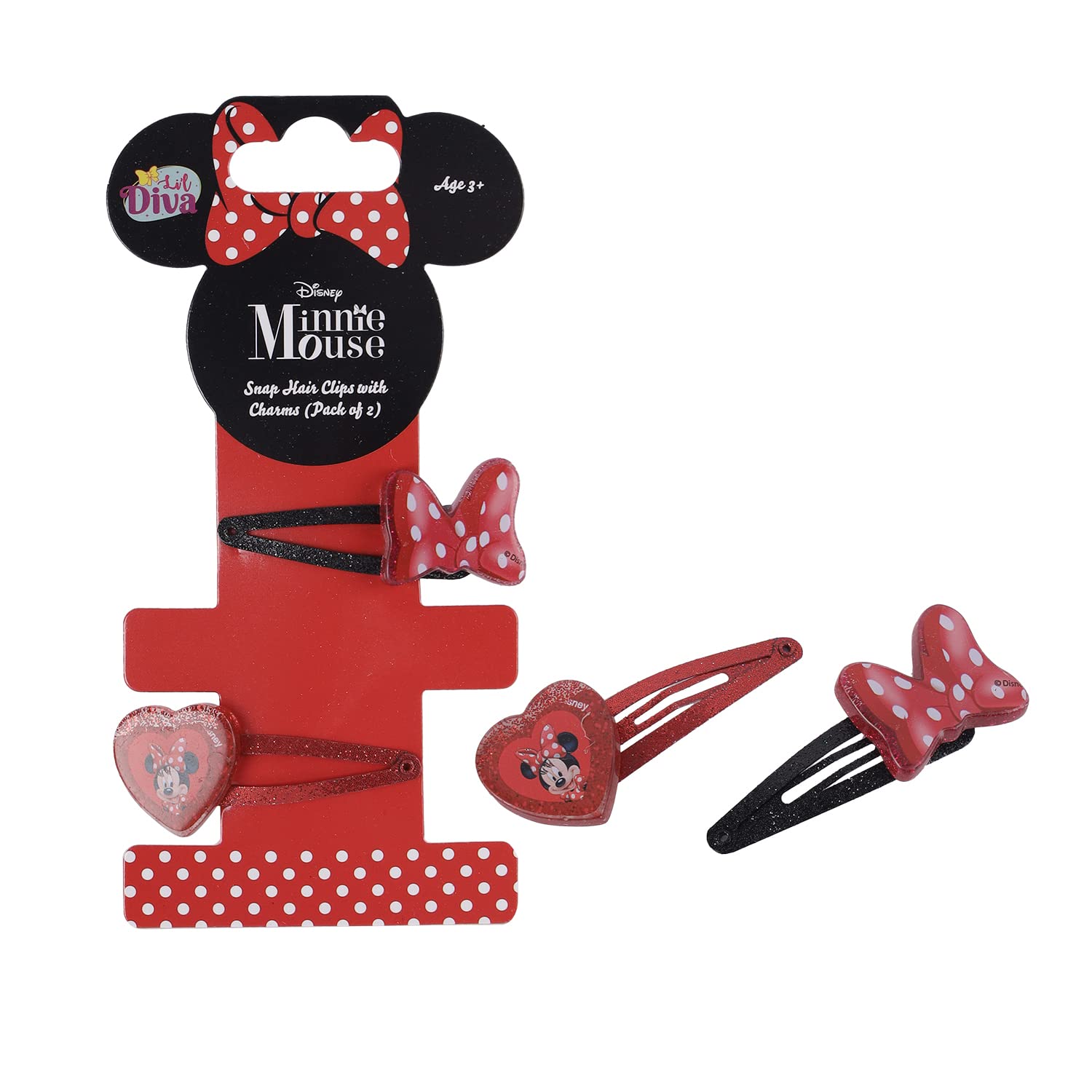 Pack of 2 red and black snap clips with Minnie Mouse charms |