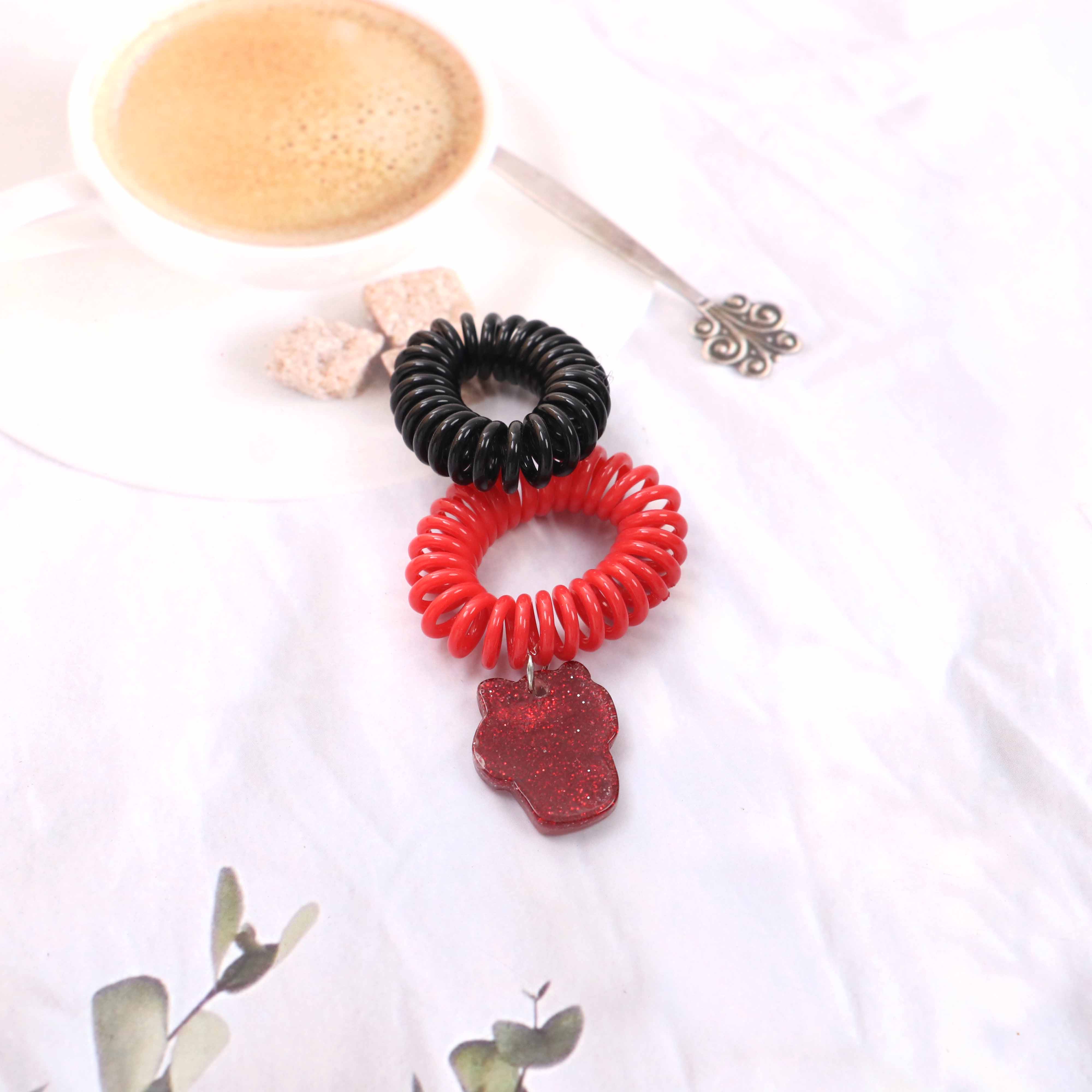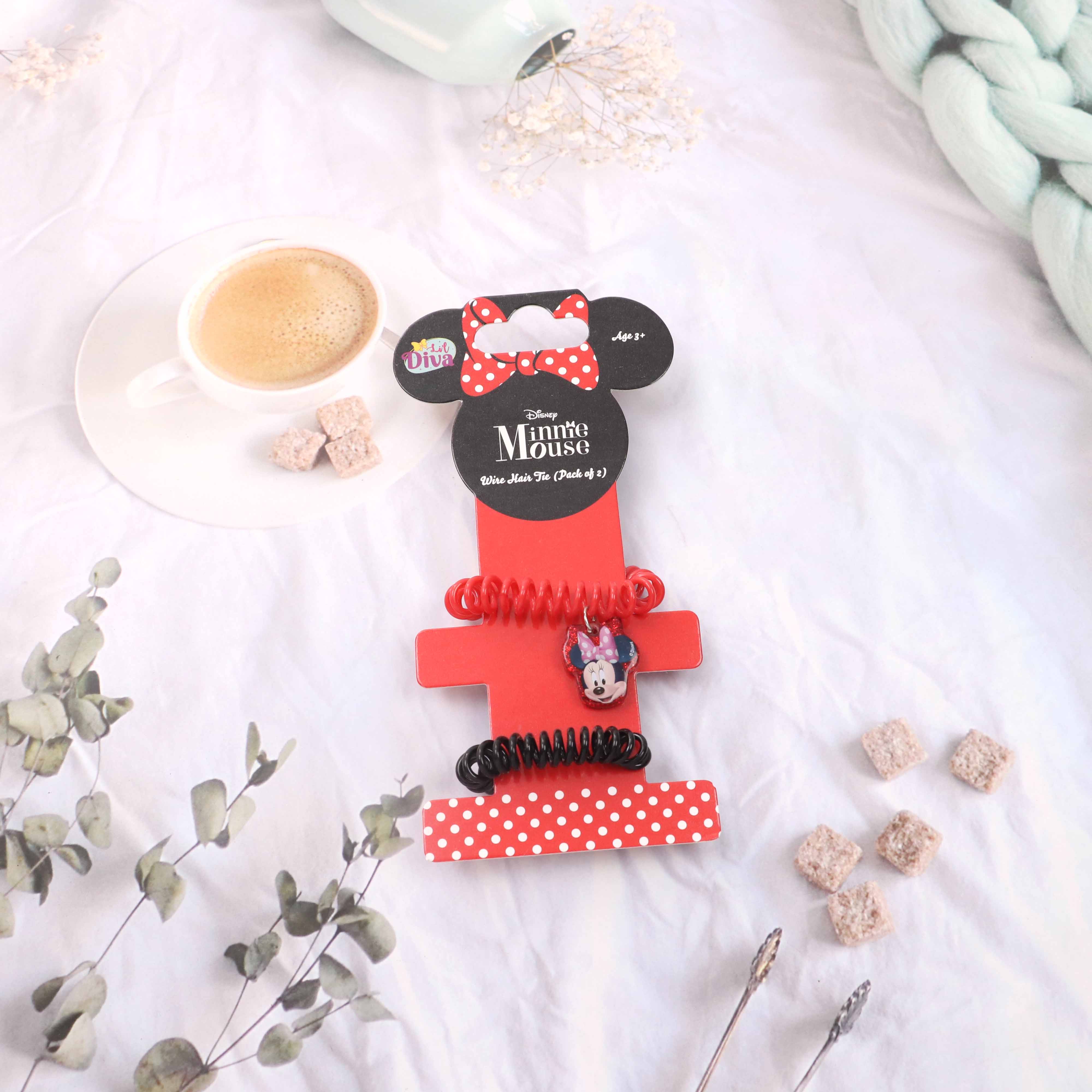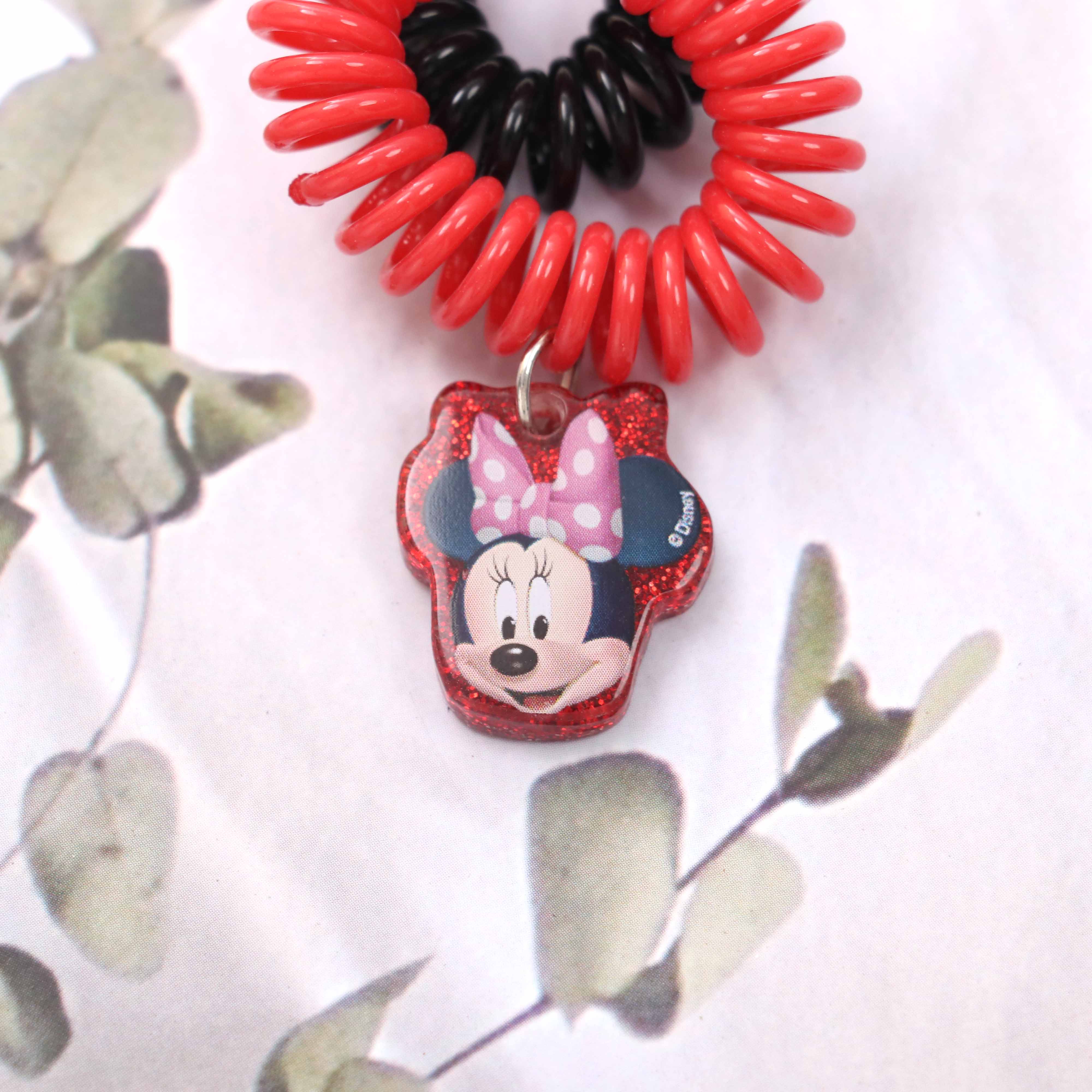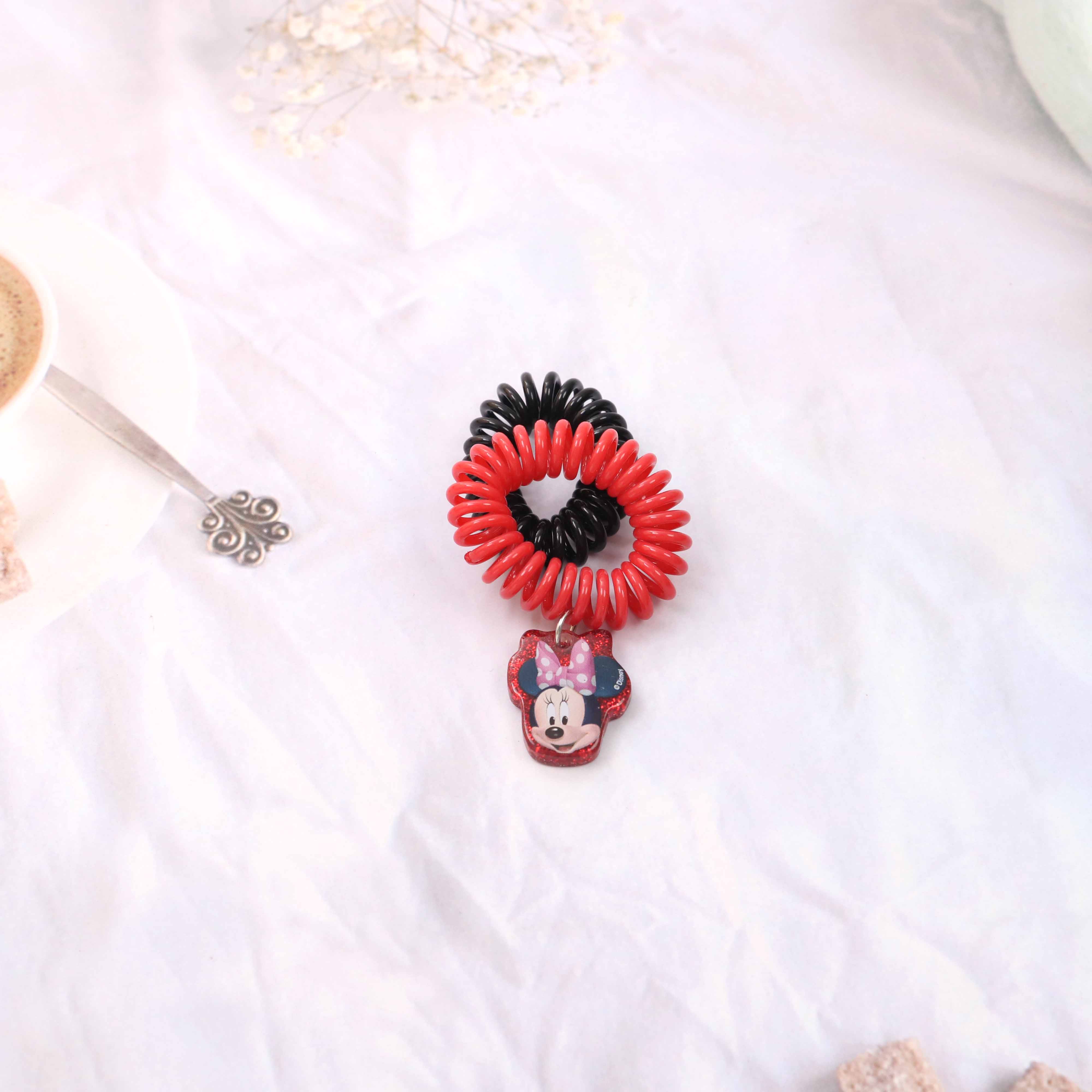 Pack of 2 red and black wire bands with Minnie Mouse charms |