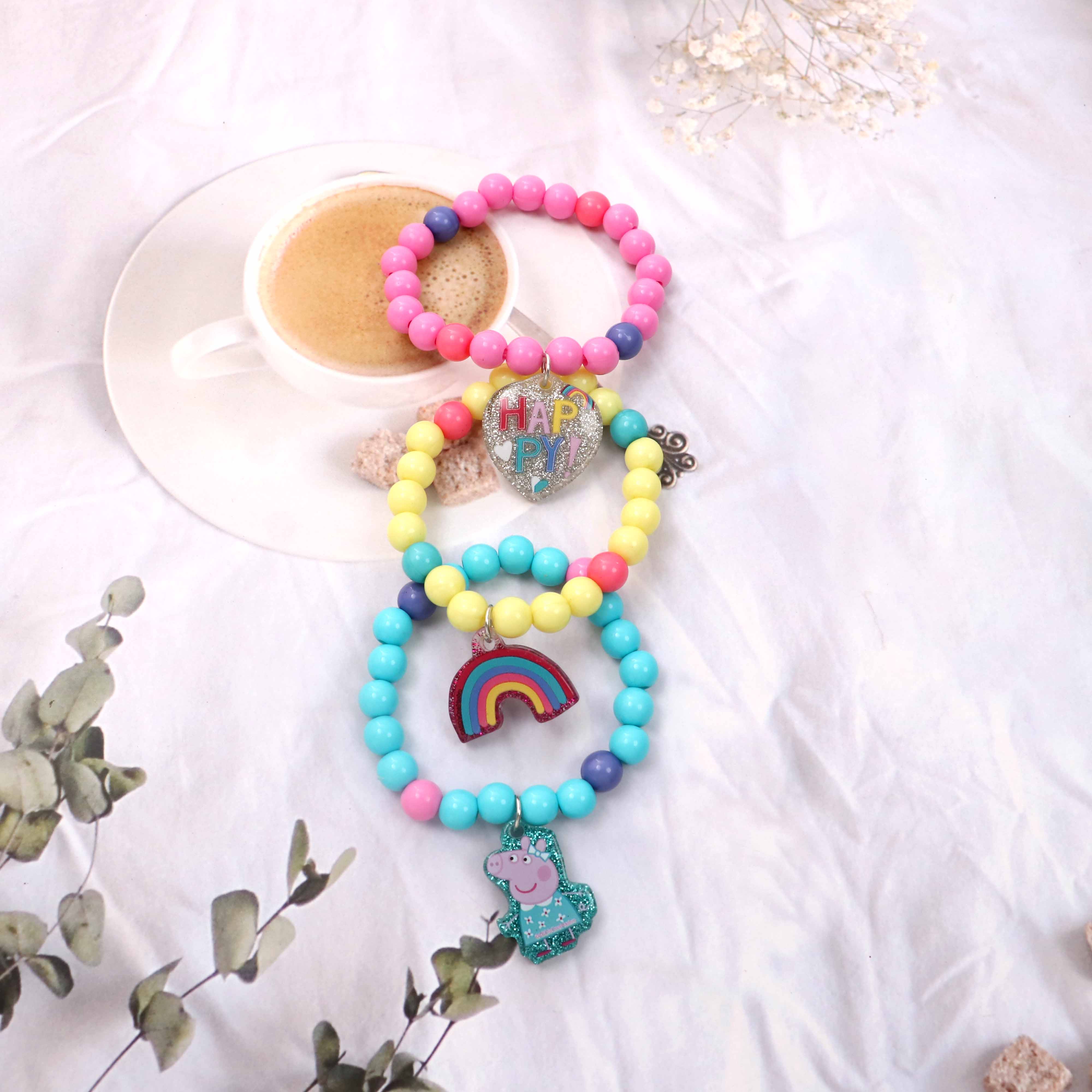 Each bracelet ahs a different type of Peppa Pig related charm |