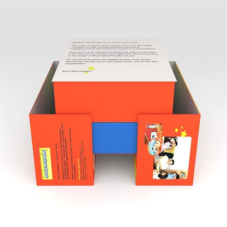 4 Different Games : a) Race - A - Thone b) Shape- it Up c) Dice Dart d) Smart Charades : That helps develop strategy and problem solving skills in children. Also helps to improve social interaction and dexterity. Fun game for the kids above 5 years |