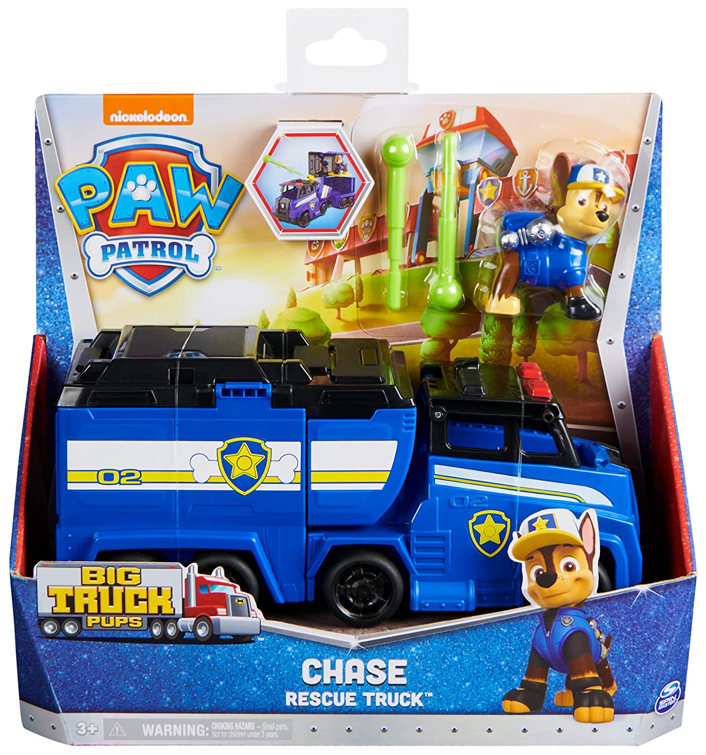 CHASE ACTION FIGURE: Geared up in his blue Big Truck Pup uniform, complete with trucker hat and backpack, Chase is on the case and ready for some exciting highway rescue missions! |