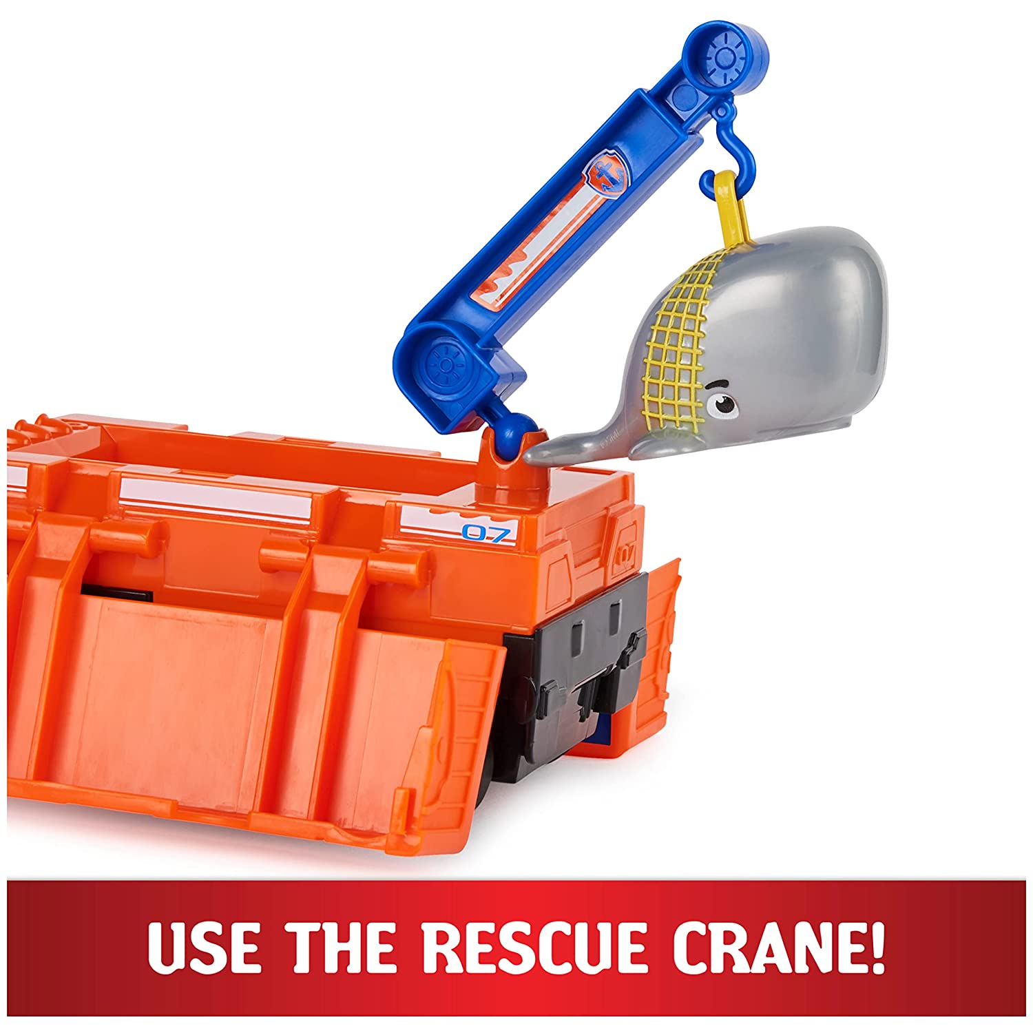 ENGAGE RESCUE CRANE When the trailer is in Command Center mode, place Zuma at the controls to engage the rescue crane toy and load his Whale friend into the rescue tank! |