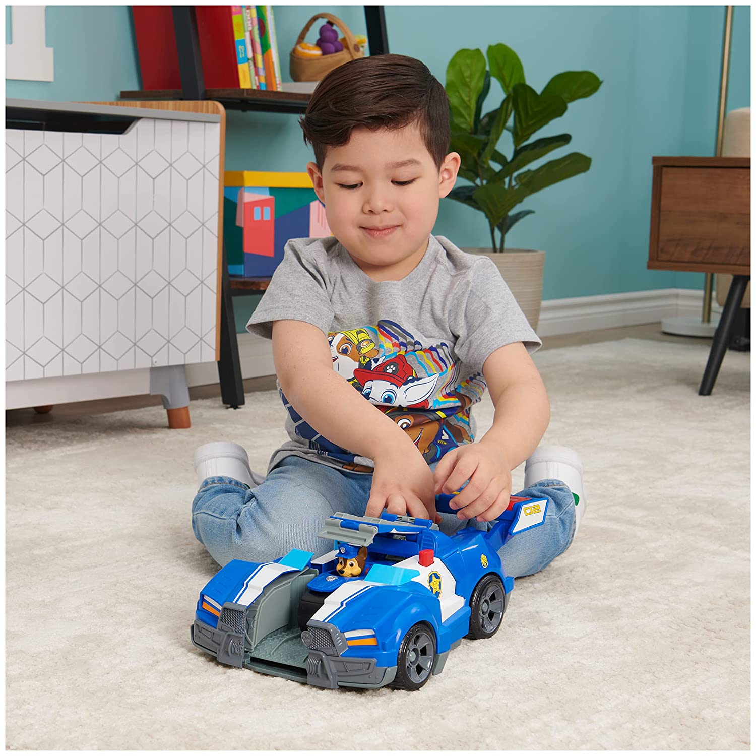 TRANSFORMING TOY CAR: Push the spoiler to armor up Chase’s Deluxe Vehicle, revealing a projectile launcher in the back! |