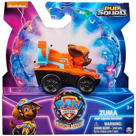 "Zuma Racer: Ready for Aquatic Adventures!" ⭐️⭐️⭐️⭐️ The Mighty Mini Squad Racer Zuma is a fun addition to our Paw Patrol collection. The design is cute, and the size is perfect for little hands. My child enjoys racing Zuma around and incorporating him into their rescue missions. The wheels move smoothly on most surfaces, although they could be improved for better traction. Overall, it's a solid toy that provides hours of entertainment and imaginative play.