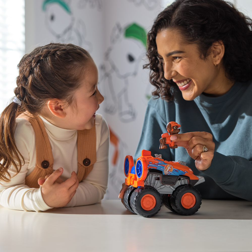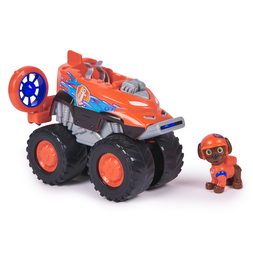 PROJECTILE LAUNCHER: Zuma’s Hovercraft themed monster truck comes with 2 projectiles and a projectile storage port Load the projectile into the launcher, then push the button to fire & save the day |