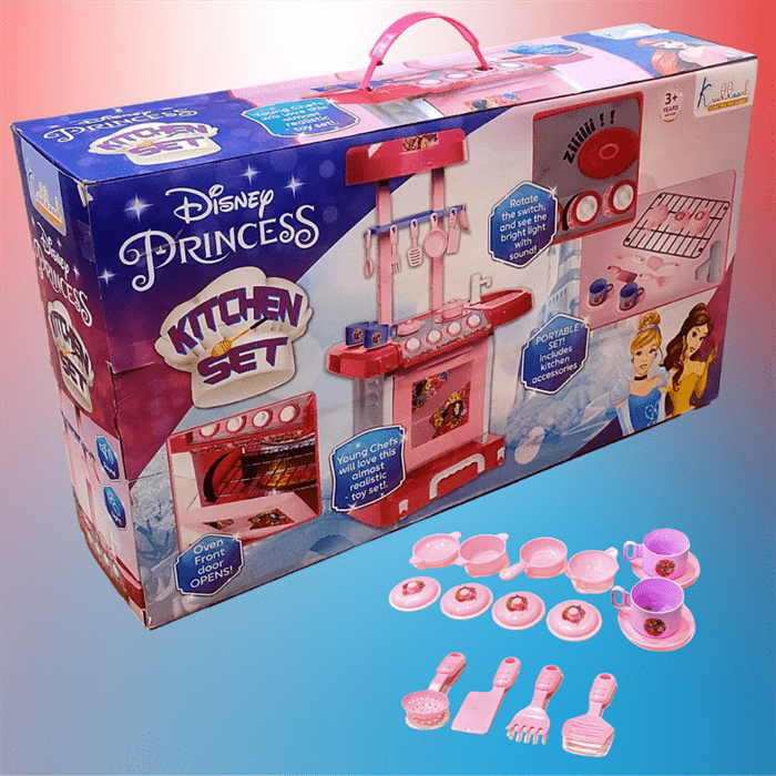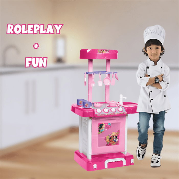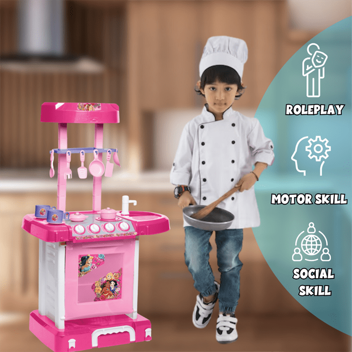 The PlayMagic Kitchen Set Princess is the perfect pretend play kitchen that allows kids to cook, serve, and clean up like a real chef! With interactive features, this set provides endless hours of imaginative fun as children explore various kitchen tasks and role-play different culinary activities. It's an ideal way to inspire creativity and develop essential life skills through play.