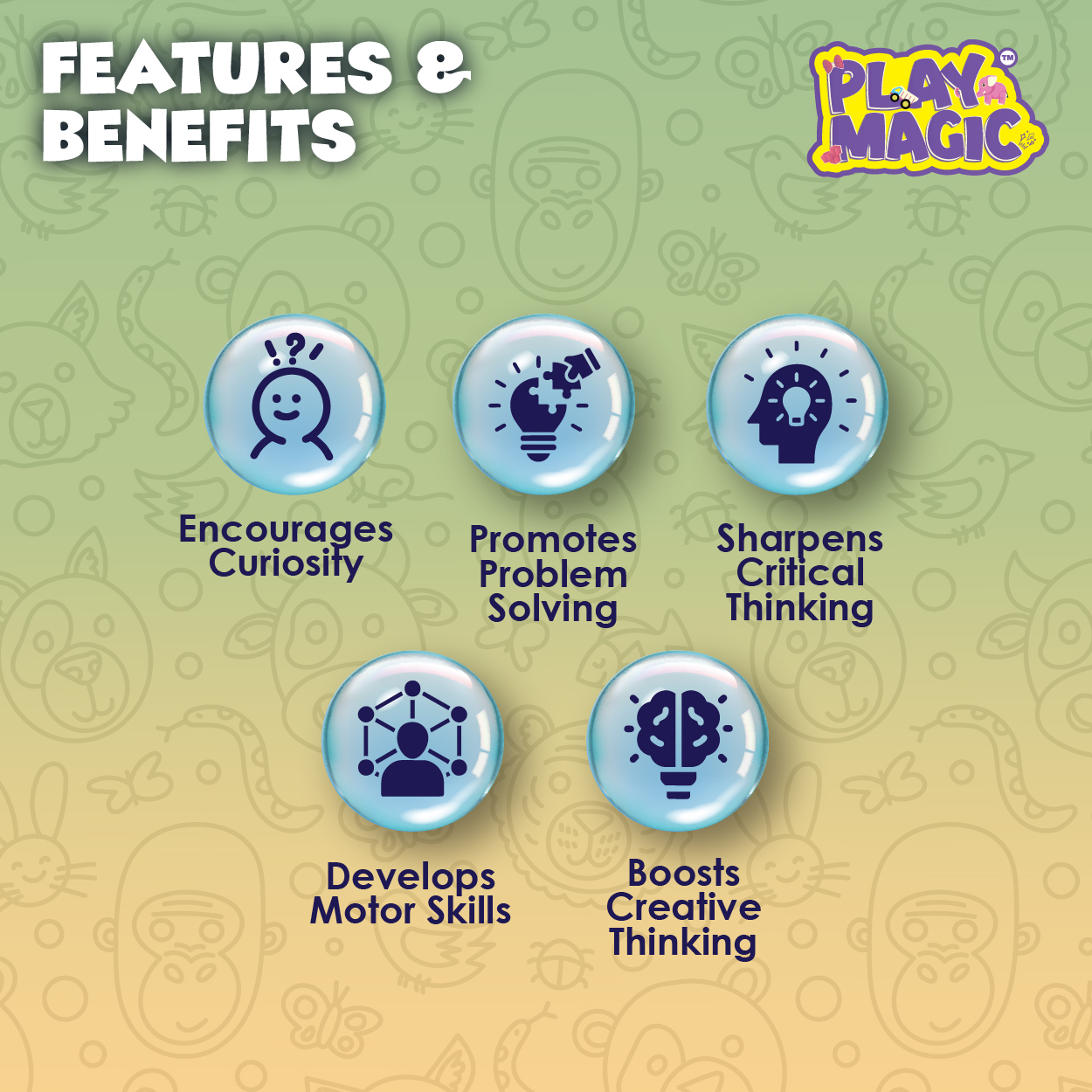 Skill Booster: Enhance your little one's logical reasoning, problem-solving, and critical thinking and stay engaged for hours on end with this diverse range of brain-puzzling, thematic activities! |