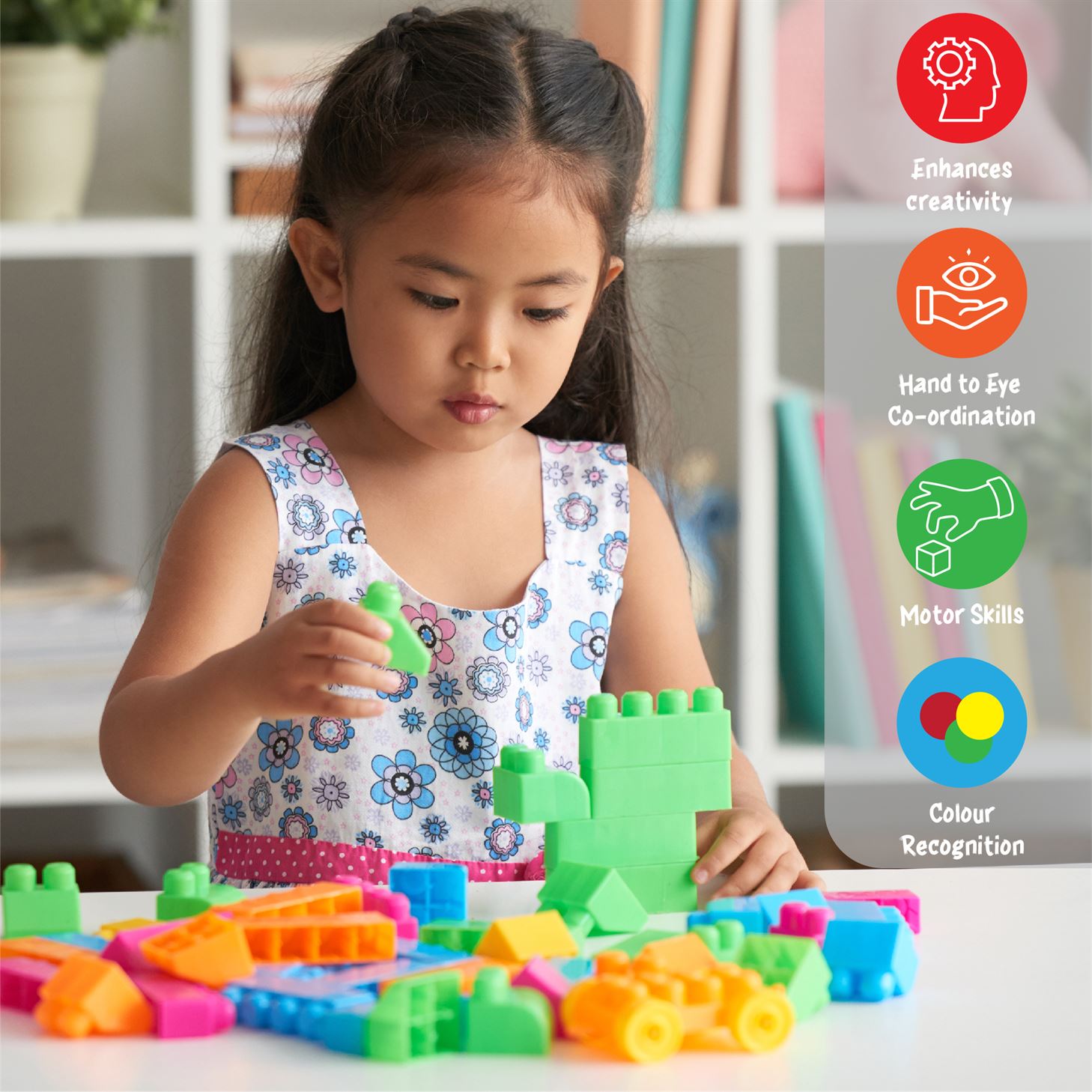 Problem Solve like a Pro: As the child builds and plays, the vibrant designs of the blocks will trigger your little one's problem solving skills! PlayMagic Building Blocks are the perfect tool to develop minds! |
