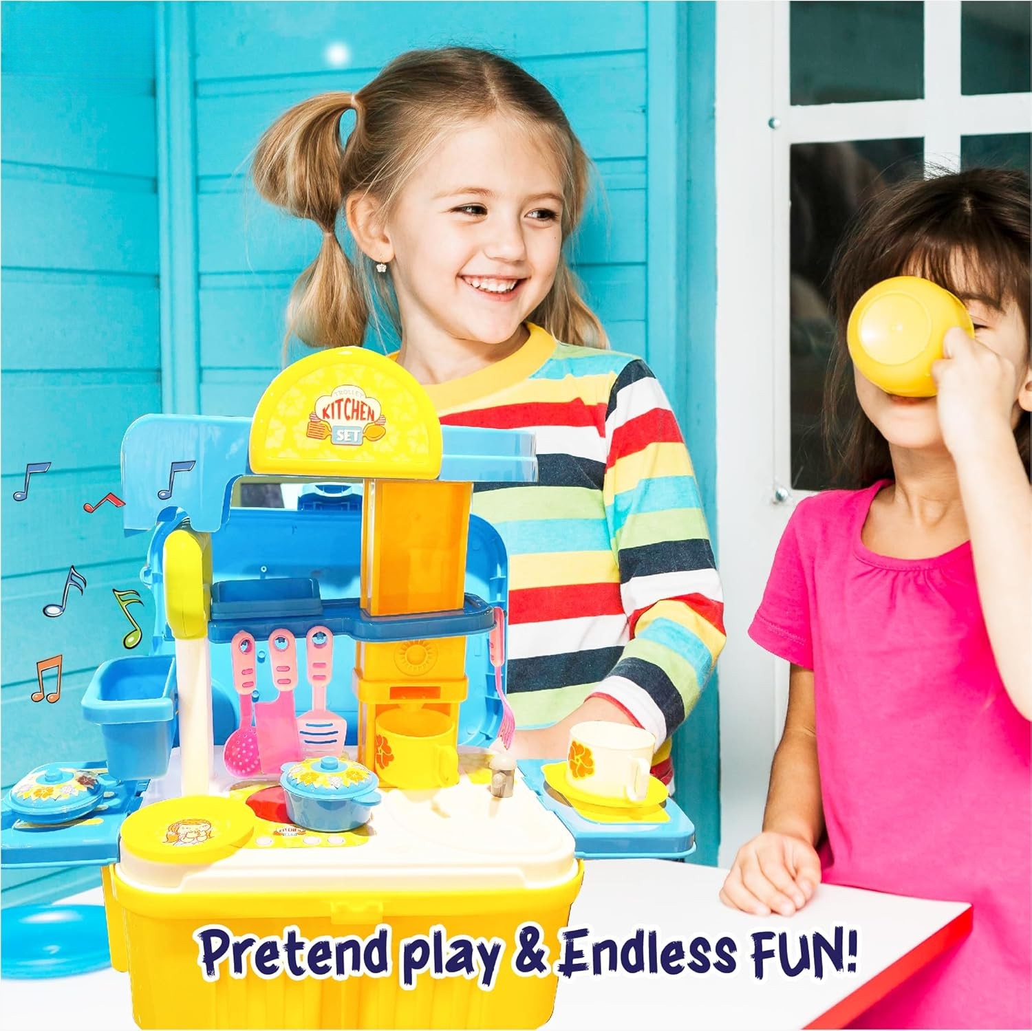 Realistic and Interactive: Featuring turning knobs, a mini stove, and utensils, it offers a lifelike kitchen experience for creative role-playing. |