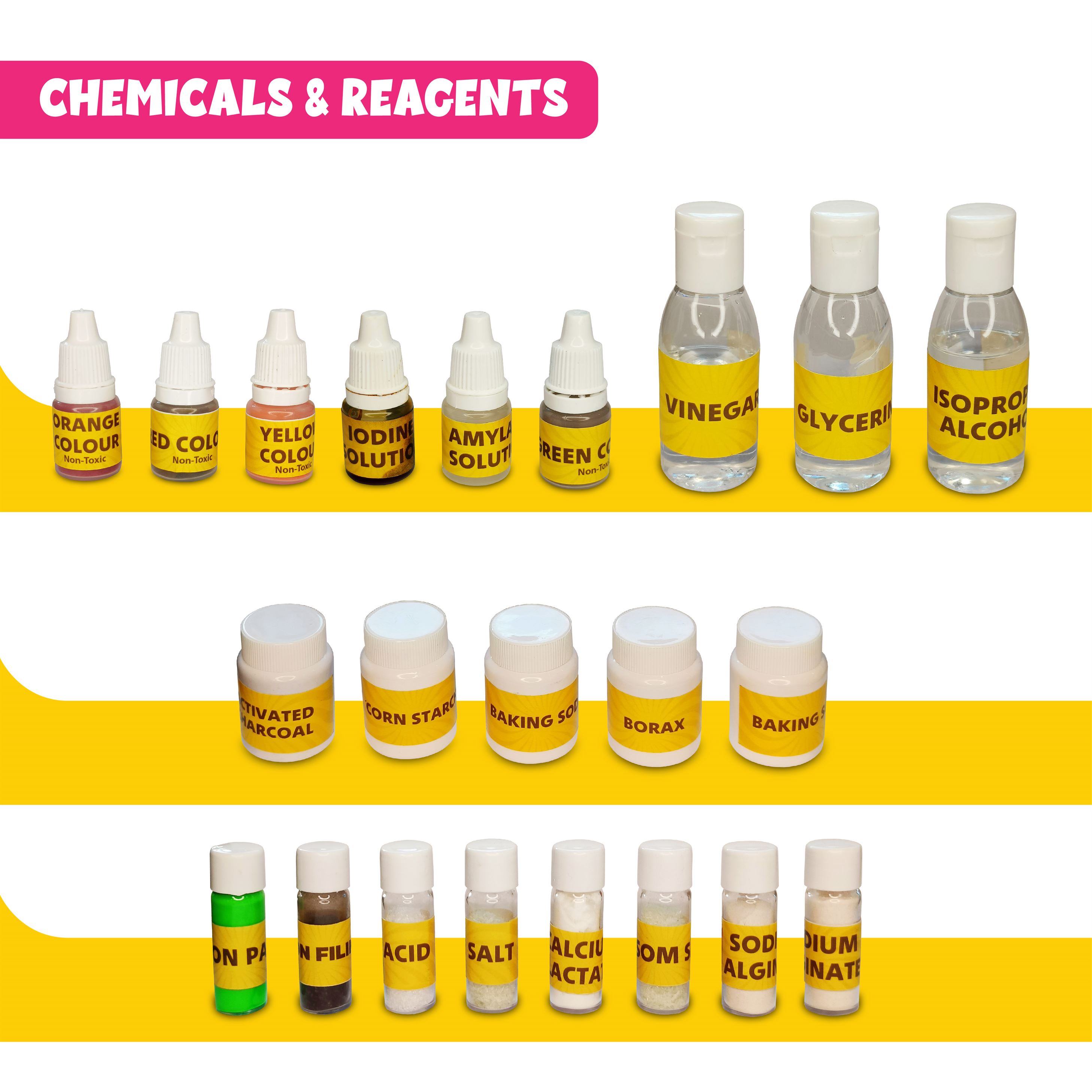 Chemicals x 15 Laboratory apparatus x 7 Miscellaneous x 10 |