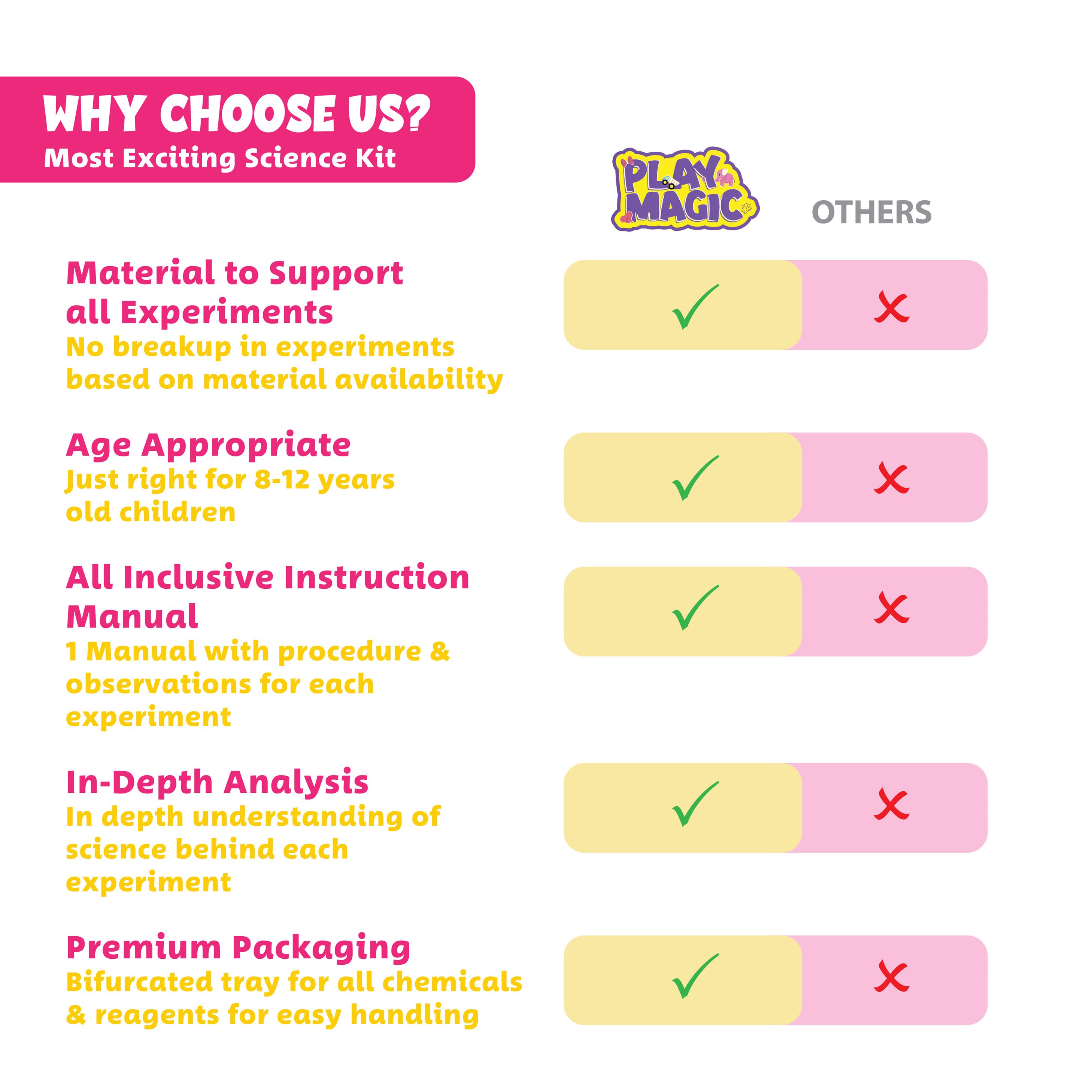 PlayMagic Discovery Science Kit is an exciting pack of 100+ experiments that tickle the curious mindset of little kids aged 8 years and older. The pack contains all the elements that are needed to support experiments with readily available items at home. The experiments cover a wide range of topics, like reactions and bonds, properties of matter, acid-base reactions, and much more. All the experiments are specially curated to develop the scientific mindset of children. The pack contains non-toxic material that is safe for experimentation at home by small children. The instruction manual provided is detailed step-by-step and also gives the learning behind each experiment. ToyMagic Supreme Science Kit is the ultimate science experiment pack and an ideal gift for kids aged 3 years and older
