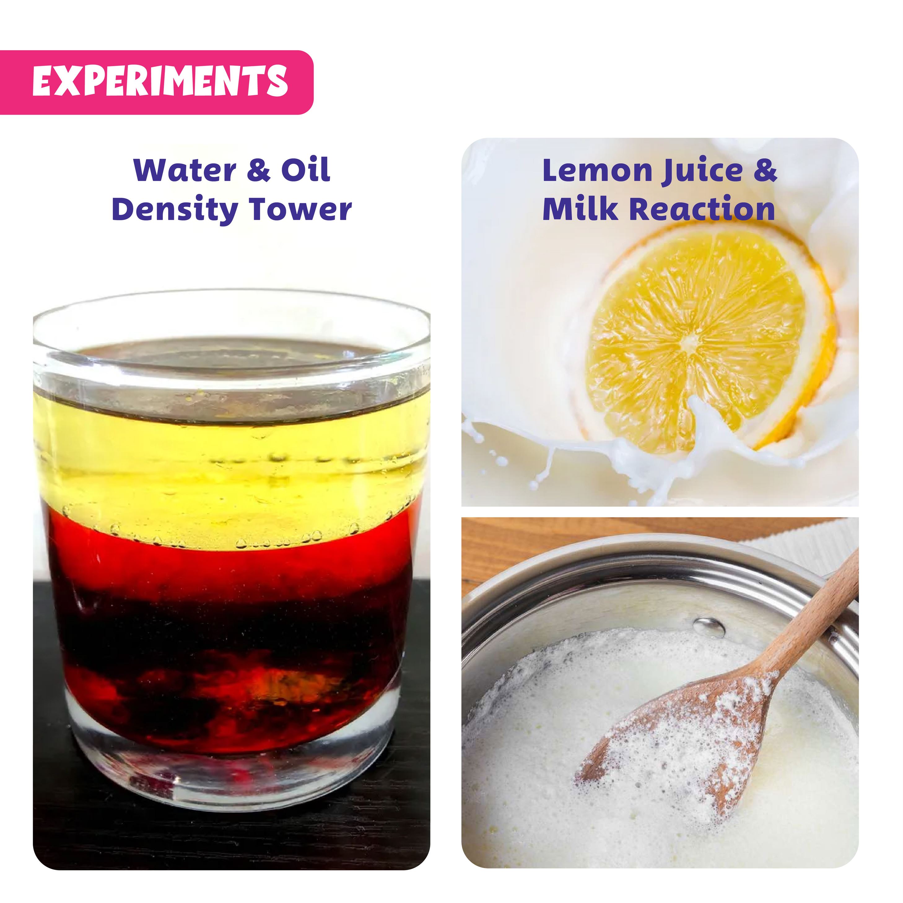 Above 100 experiments with step-by-step instruction manuals for kids to perform experiments safely at home, have fun and learn fundamental chemistry and physics concepts. |
