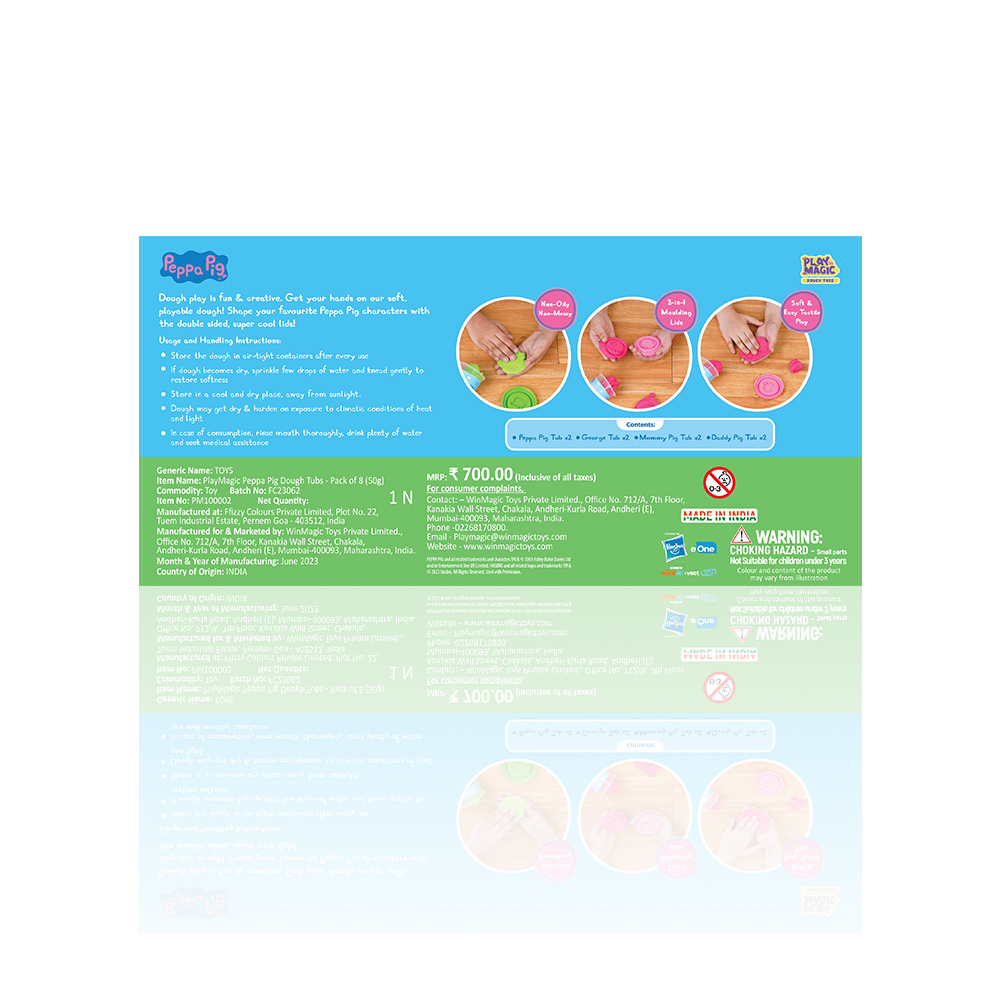 Water based dough with a non-greasy feel on your palms. It's convenient to play with and does not leave stains. In case the dough dries, it can be revived by sprinking a few drops of water and kneading till the desired consistency is achieved |