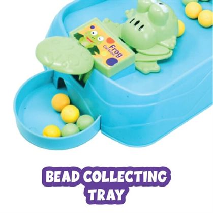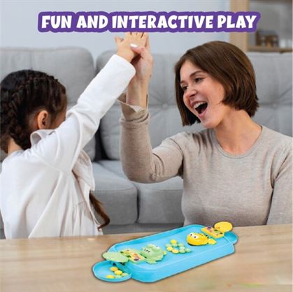 Race to Feed the Frogs in this action-packed 2-player game! Press the button and feed the hungry frogs! Frogs that have eaten the most peas WIN! Get ready for hours of fun with your family & friends with this classic party game! Build motor skills and quick reflexes as you race to feed your frog! The perfect weekend fun game.