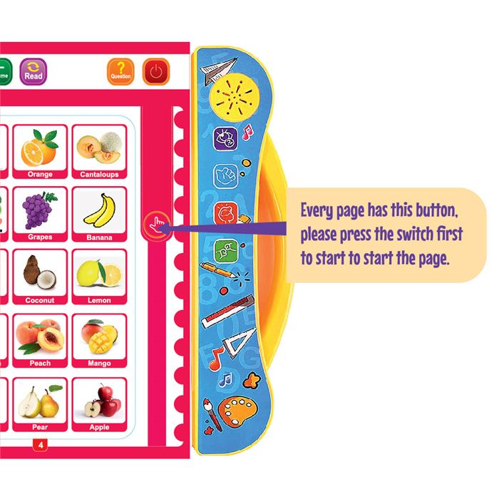 Conveniently carried in the palm of your hand, the E-Book is your doorway to an amazing world of learning! Fuse the fun of learning and tech into one with this interactive and immersive early learning experience! Learn alphabets, numbers, animal sounds, and more! Watch it light up and play music and dazzle your little ones!