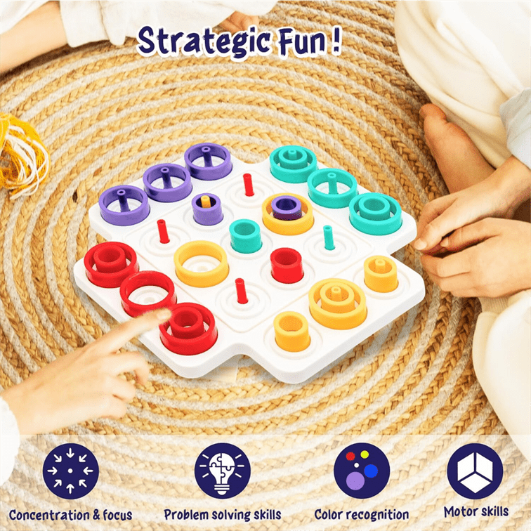 Make family game night more interesting with Krazy Rings! This colourful strategy game challenges players to line up rings by size, colour, or pattern while navigating unique traps! Perfect for kids aged 5 and up, Krazy Rings enhances critical thinking, problem-solving, and hand-eye coordination. Perfect for parties, keep guests entertained for hours with this social board game!