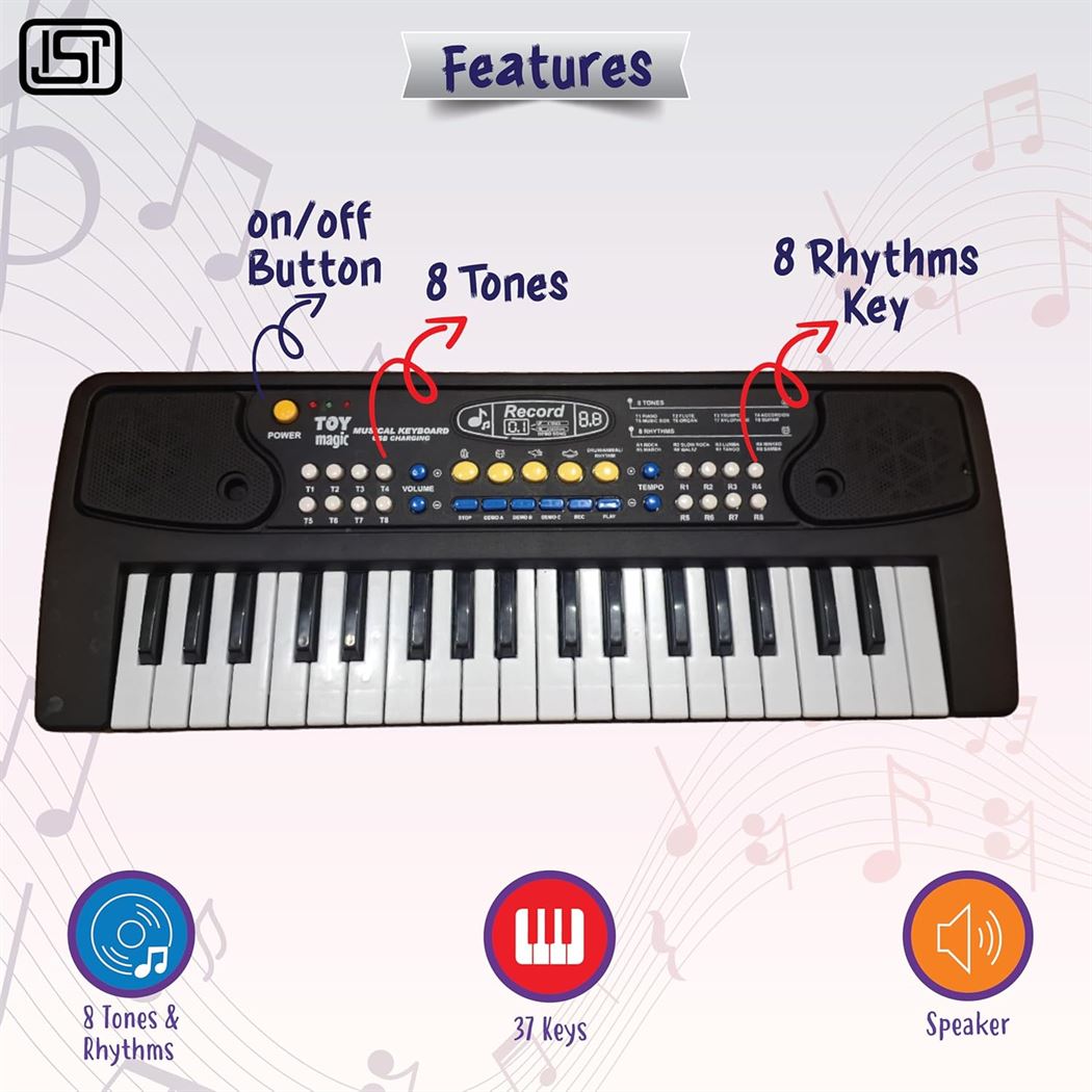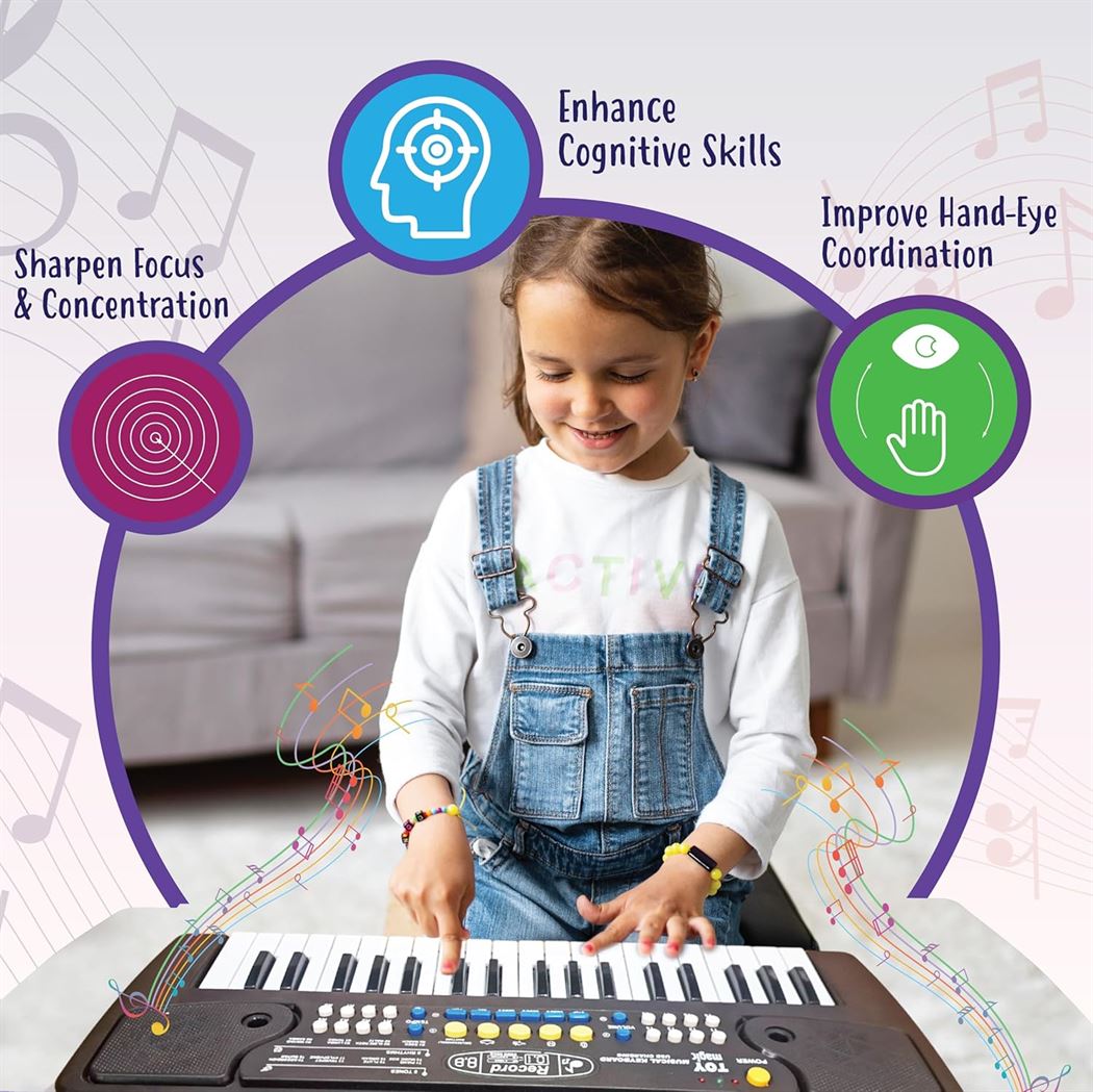 Skill Enhancement: Designed with 37 keys, this keyboard is perfect for beginners and young learners. Aspiring musicians can develop their motor skills and finger dexterity while practising melodies, scales, and chords! |