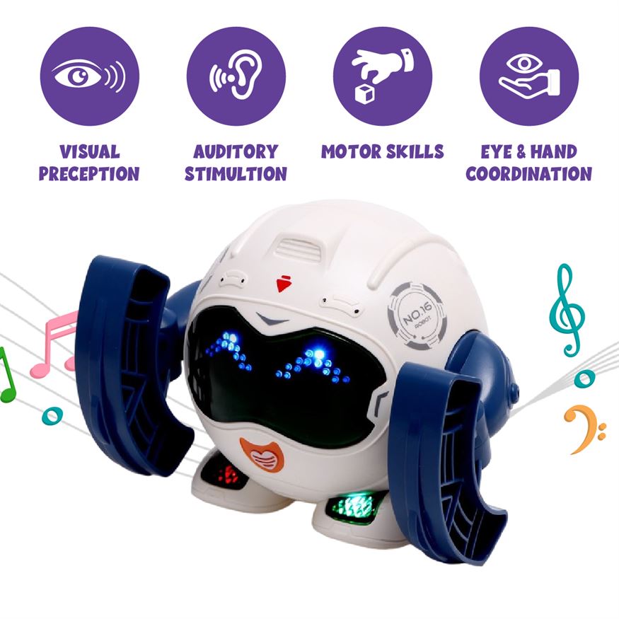 Interactive Musical Play: PlayMagic’s Musical Rolling Robot combines the excitement of a rolling robot with the joy of music and lights. Dance and sing along with the Musical Rolling Robot! |