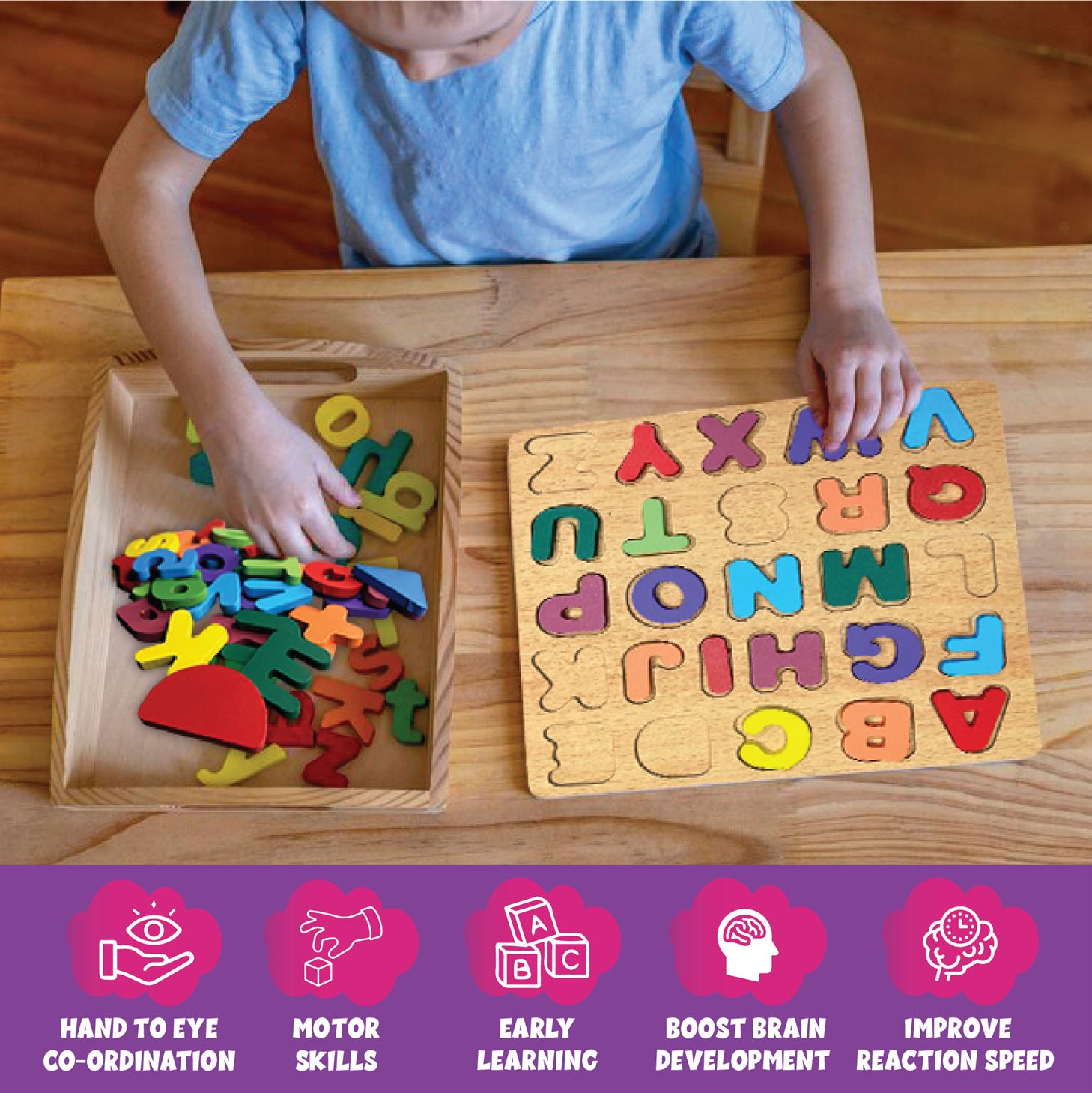 Shape recognition, Letter recognition, Number recognition, Motor Skills, Pattern Recognition, Basic Language skills ,Cognitive ability skills,Hand & Eye coordination skills ,Learning Toys |