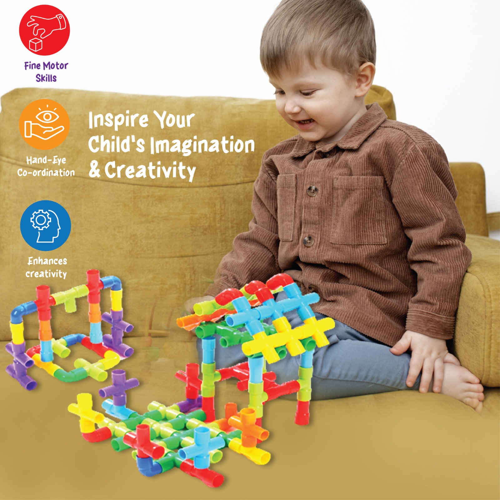 Durable and Safe Construction: Made from sturdy, non-toxic materials, PlayMagic Pipe Building Blocks are designed to be safe and long-lasting. The blocks are easy to handle and fit together securely, ensuring that playtime is safe and enriching! |