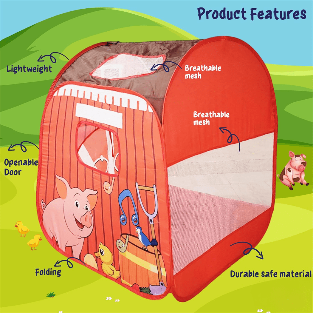 Imaginative Play – The vibrant farm animal prints inspire creative storytelling and role-play, turning the tent into a fun world of barnyard adventures. Kids can pretend they’re farmers, caring for animals and running their own little farm. |