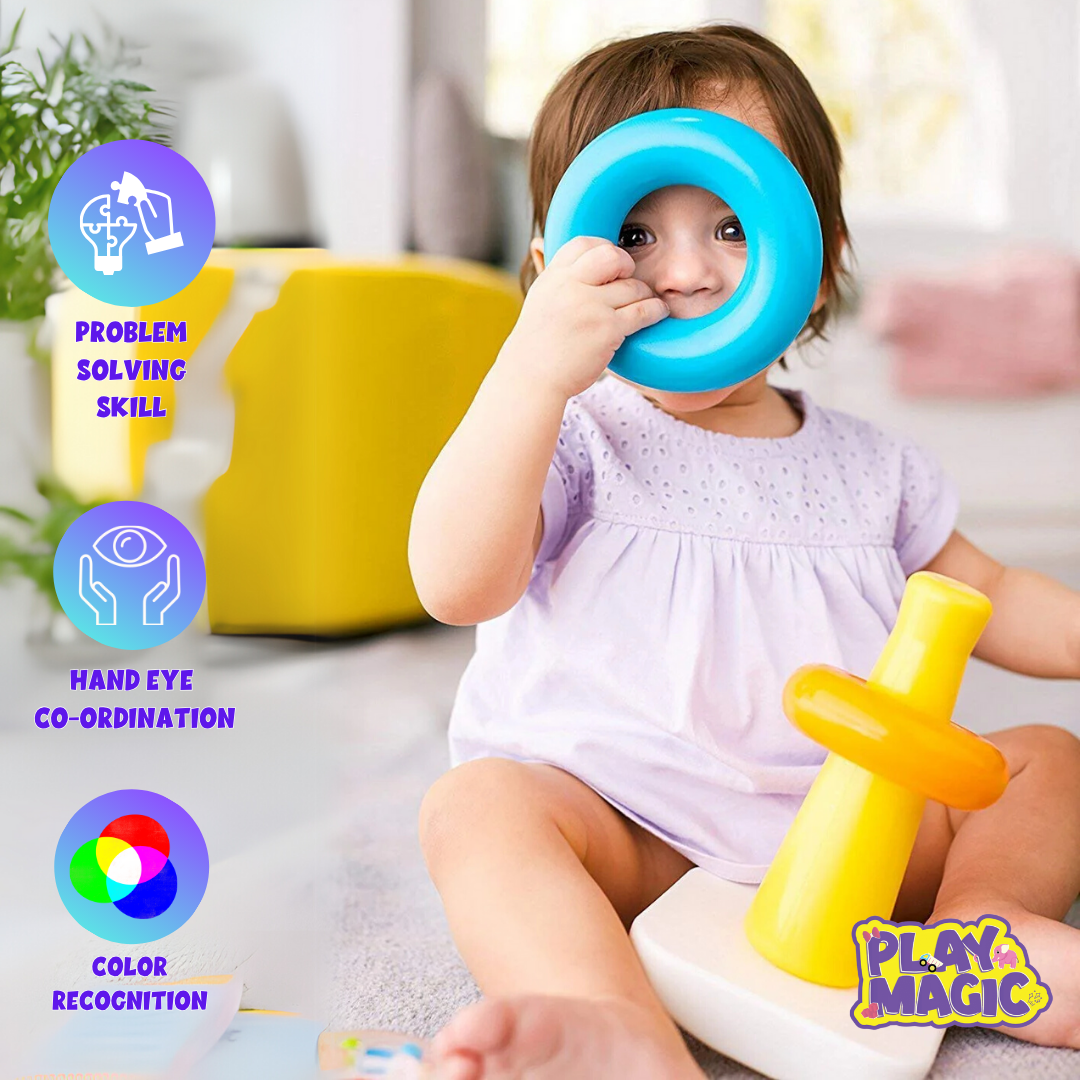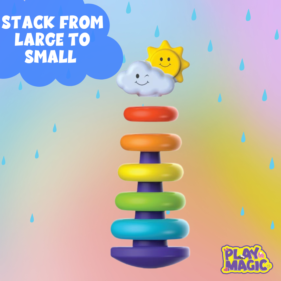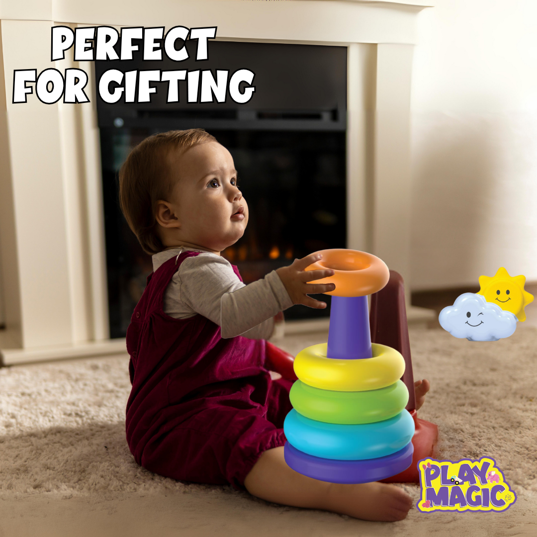 Educational Stacking: Foster your child's fine motor skills and problem-solving abilities as they stack the rainbow rings in various orders. |