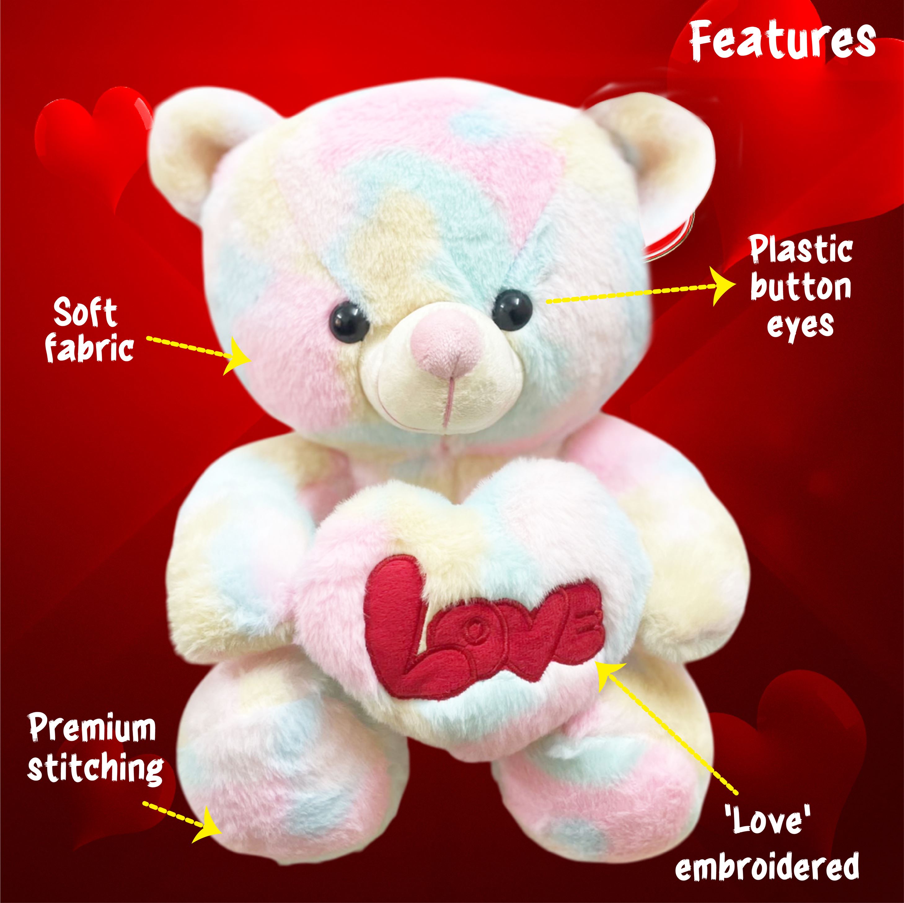 Vibrant and Eye-Catching: A rainbow-coloured teddy bear that stands out with its bright and cheerful design, spreading positivity and joy |