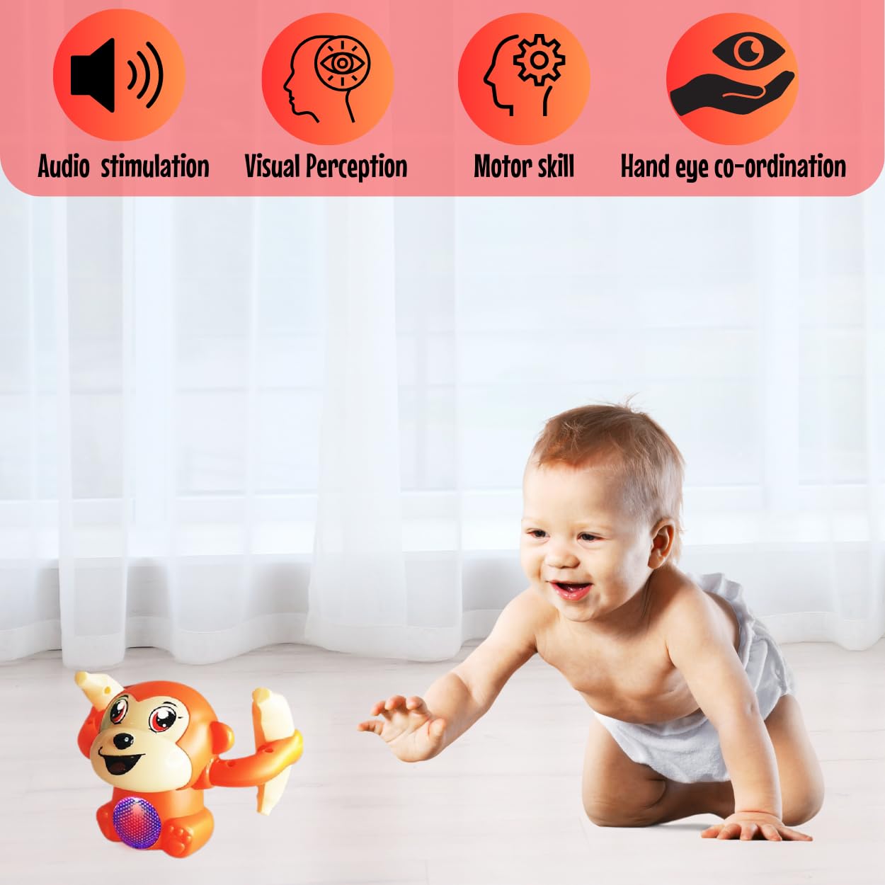 Imagination Unleashed: Watch your child's imagination soar as they create their own dance routines alongside the playful monkey. It's like having a dance partner who's always ready for a fun and imaginative performance! |